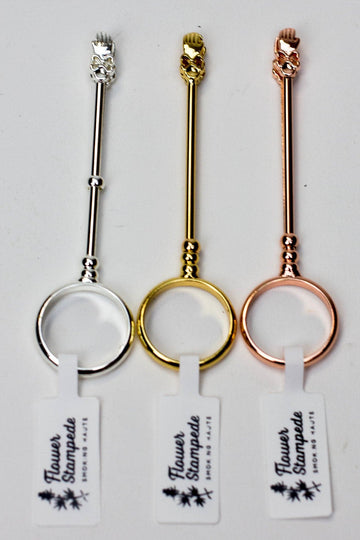Our best-seller is an elegant way to hold your smoke. Our joint holder protects your manicure from burns and yellowing. No smelly fingers! Elevate your smoking style with the Flower Stampede Ring Roach Clip. Complete with charming gift-ready storage box. Available in rose gold, yellow gold and silver.