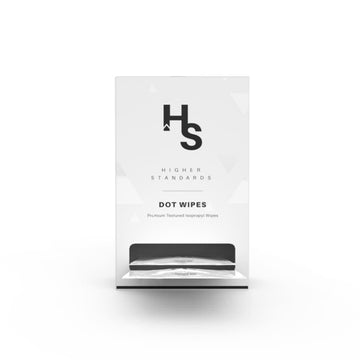 Dual-textured and durable, Higher Standards Dot Wipes are pre-soaked alcohol pads embedded with small dots to tackle stubborn scrubbing jobs for pipes, rigs, and vaporizers at home or on-the-go. Designed to cut through the most stubborn build up, Dot Wipes feature a 70% Isopropyl Alcohol solution, and can be used on most glass, metal, and silicone surfaces.