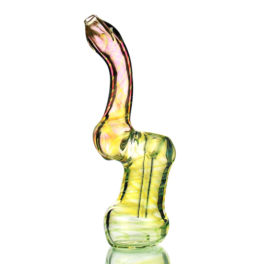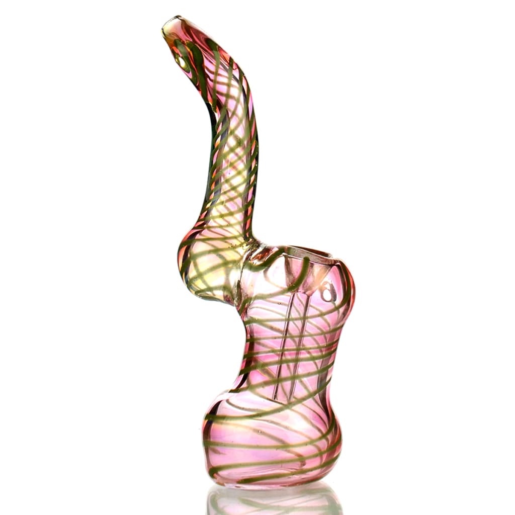 Looking for a stylish bubbler that stands out from the rest? Check out this gold fume glass bubbler with swirling art! Made with high-quality materials, it's easy to clean and built to last.