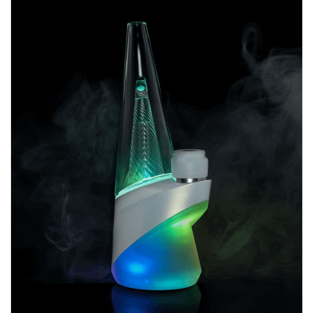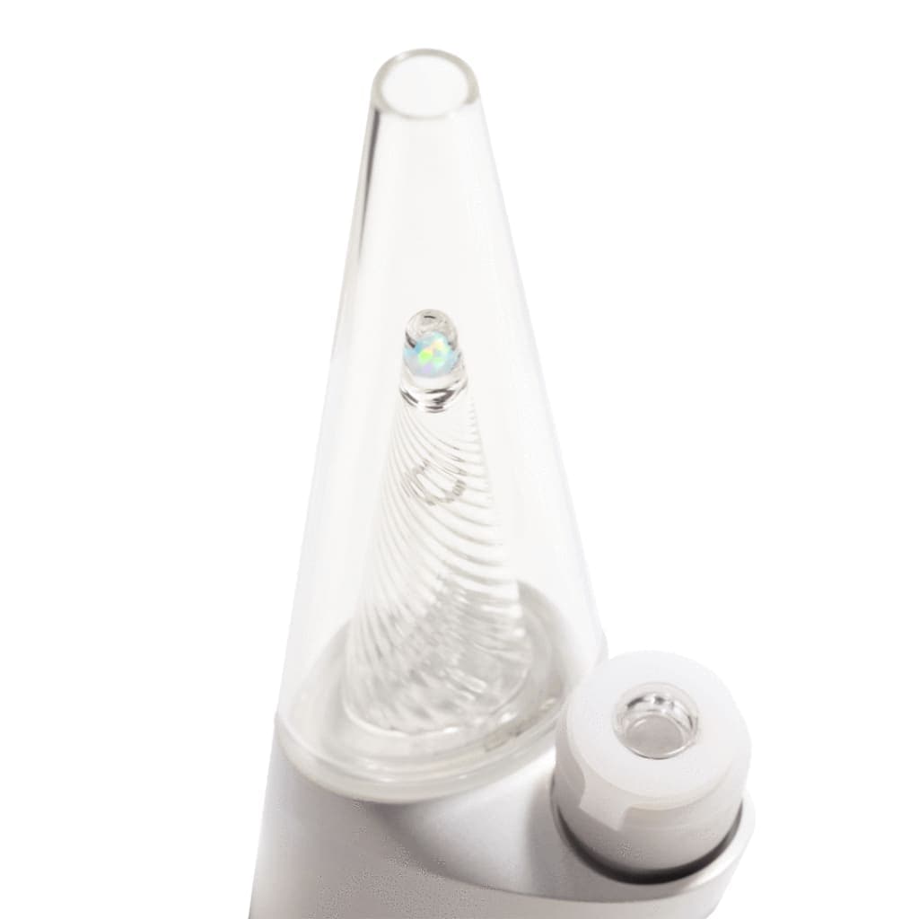 The Opal Peak Pro features a pearlescent metal band, helixed inner-cone with an opal presented at the crown, and a clear base for a clean look. When active - the LED lighting shines through the device creating an entirely different appearance.