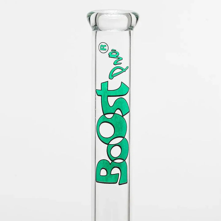 The Boost Green Beaker Glass Water Pipe is a large 17 inch classed scientific pipe. Hand made in Amsterdam by the team and Boost this is a high quality piece that is simple, but efficient. It has a sturdy build and can withstand a lot of use, making it the perfect accessory for anyone looking to enjoy their smoking experience time and time again. It is an exquisite piece of glass art that will blow your mind! It is made of sturdy heat-proof borosilicate glass, formed in the shape of a beaker base tube.