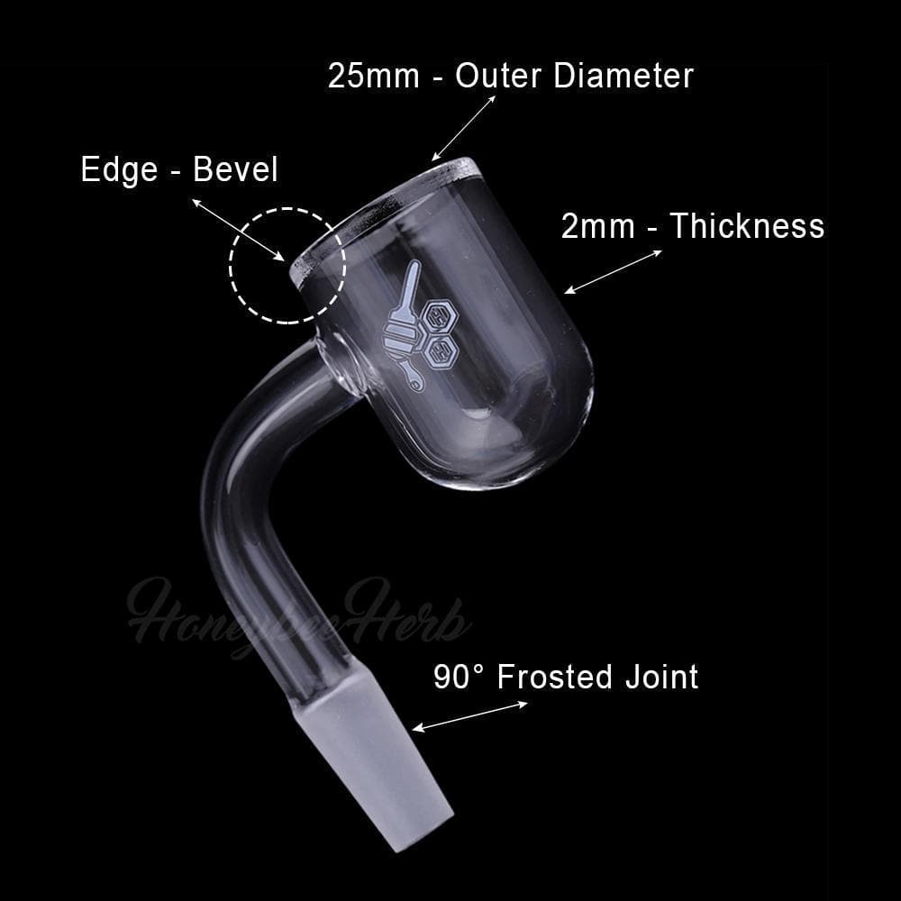 Straight forward design known and used by all but spruced up on toughness with a 4mm thickness. The thick original banger uses the standard Honeybee Herb design and styling our bangers are known for, including the very classy frosted joint and a flat top edge. A sutil elegance that begs for a classy dabber to go with it.