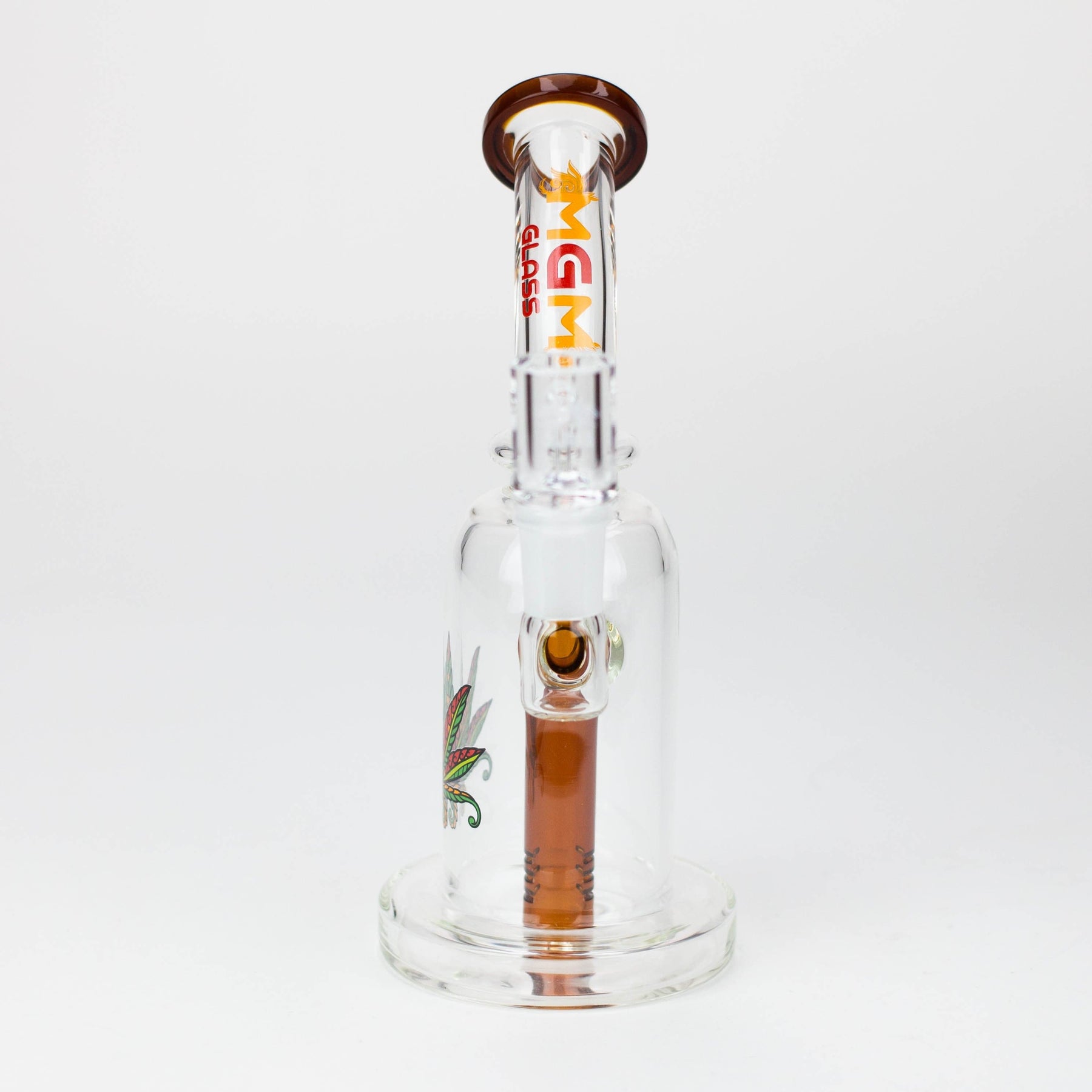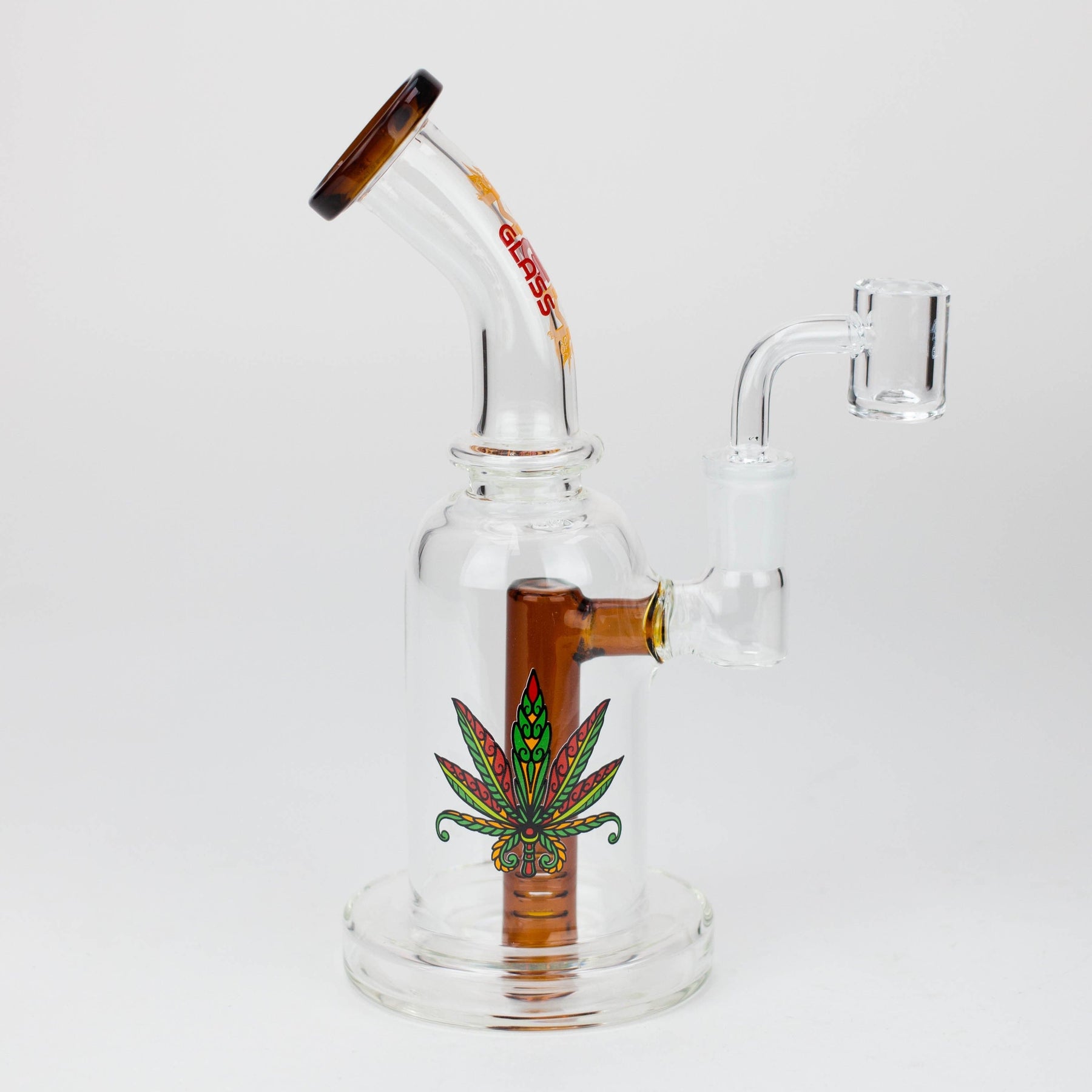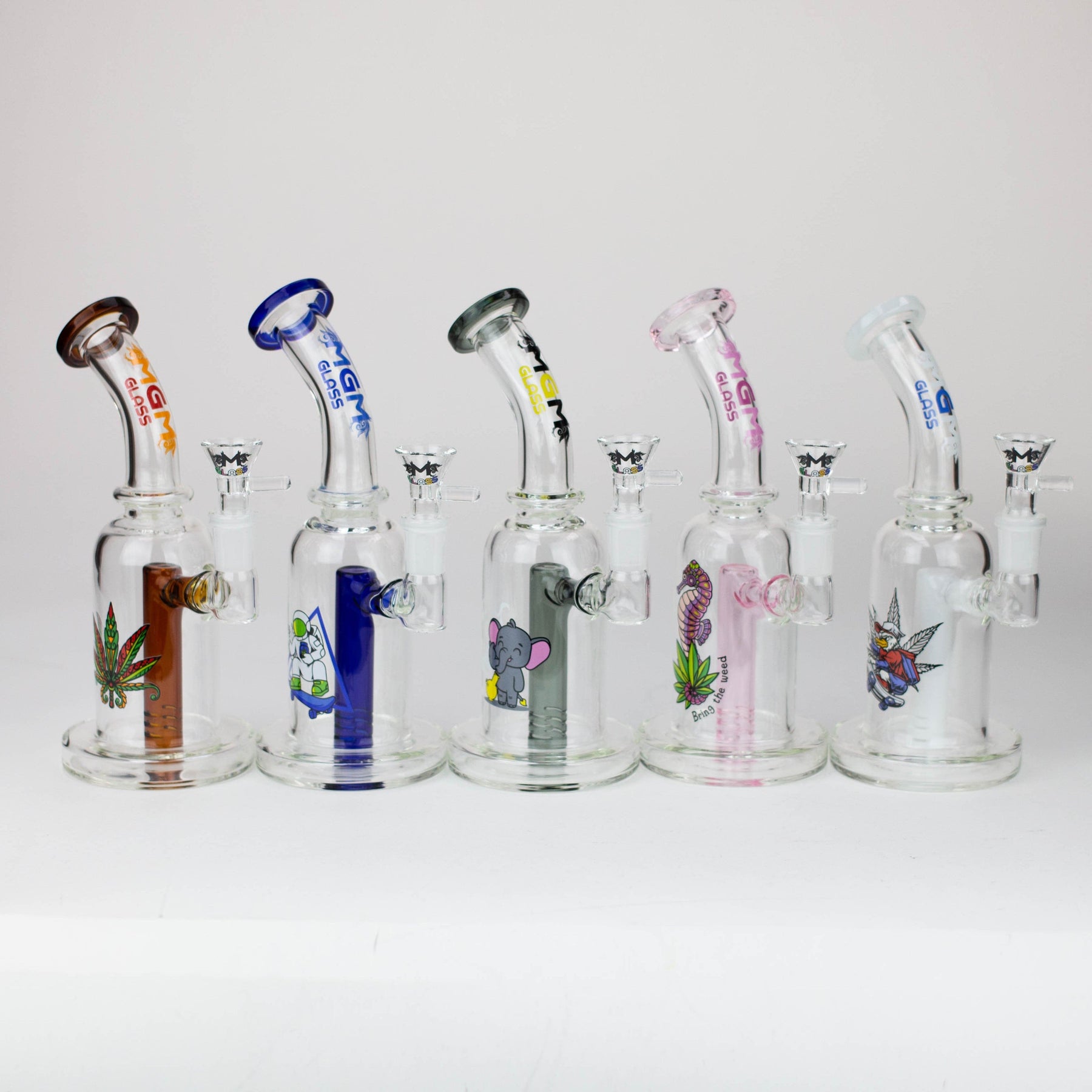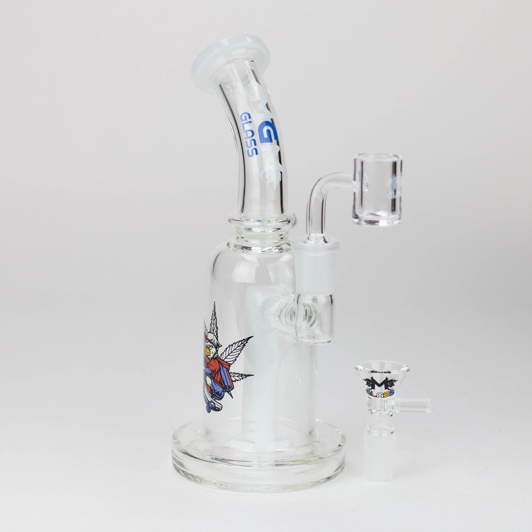 This 5.7" MGM Glass 2-in-1 bubbler boasts an impeccable construction with its quality borosilicate glass and 80 mm base, as well as the thick bowl, quartz banger, and stemless bent neck design. Providing versatility and diversification, this bubbler also comes gifted in a box of an assorted design.