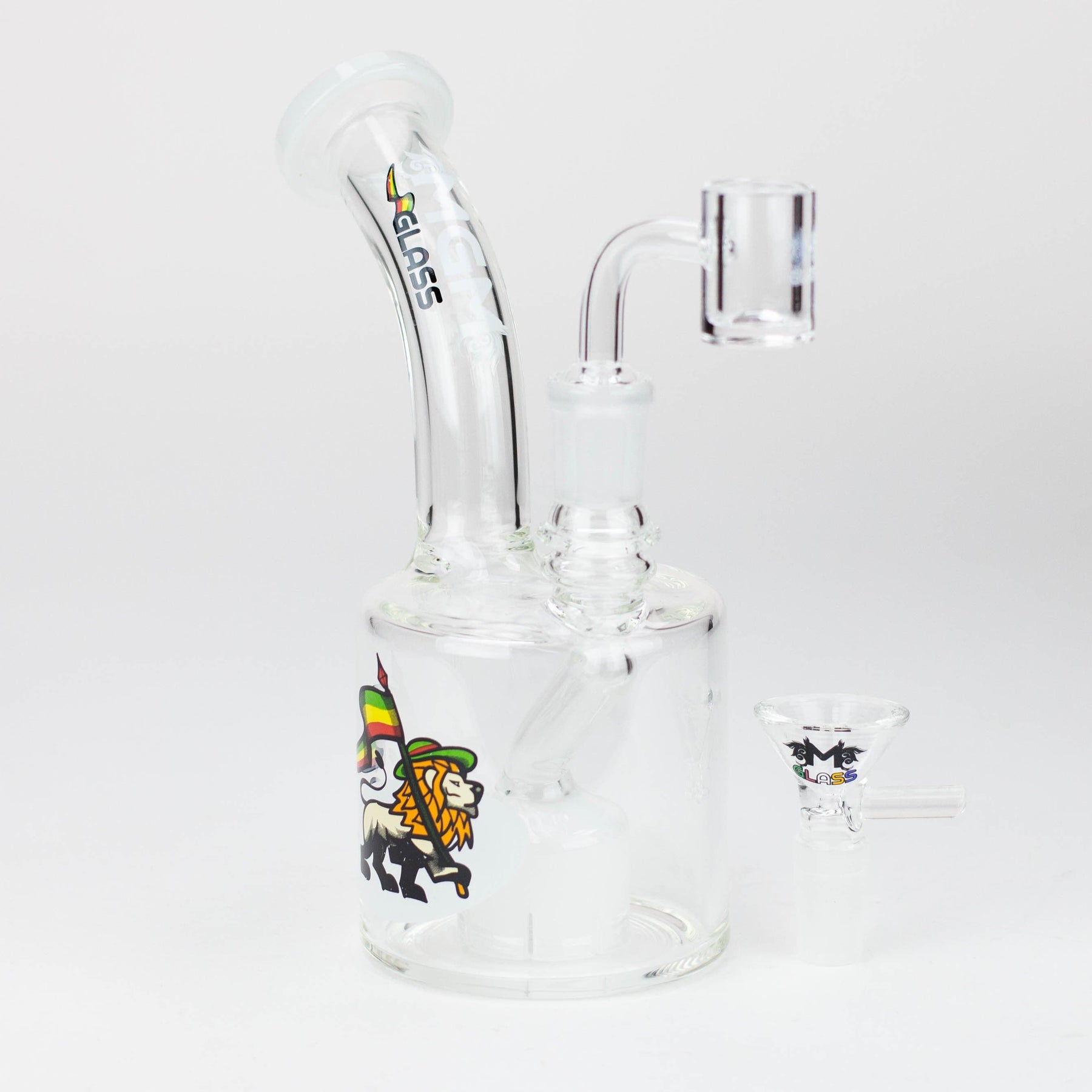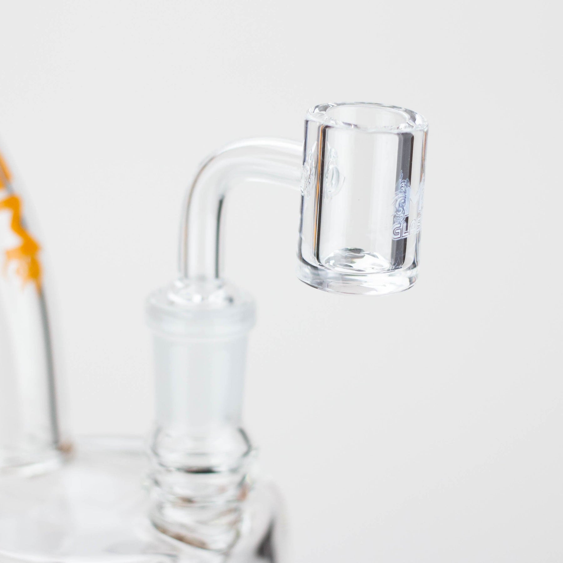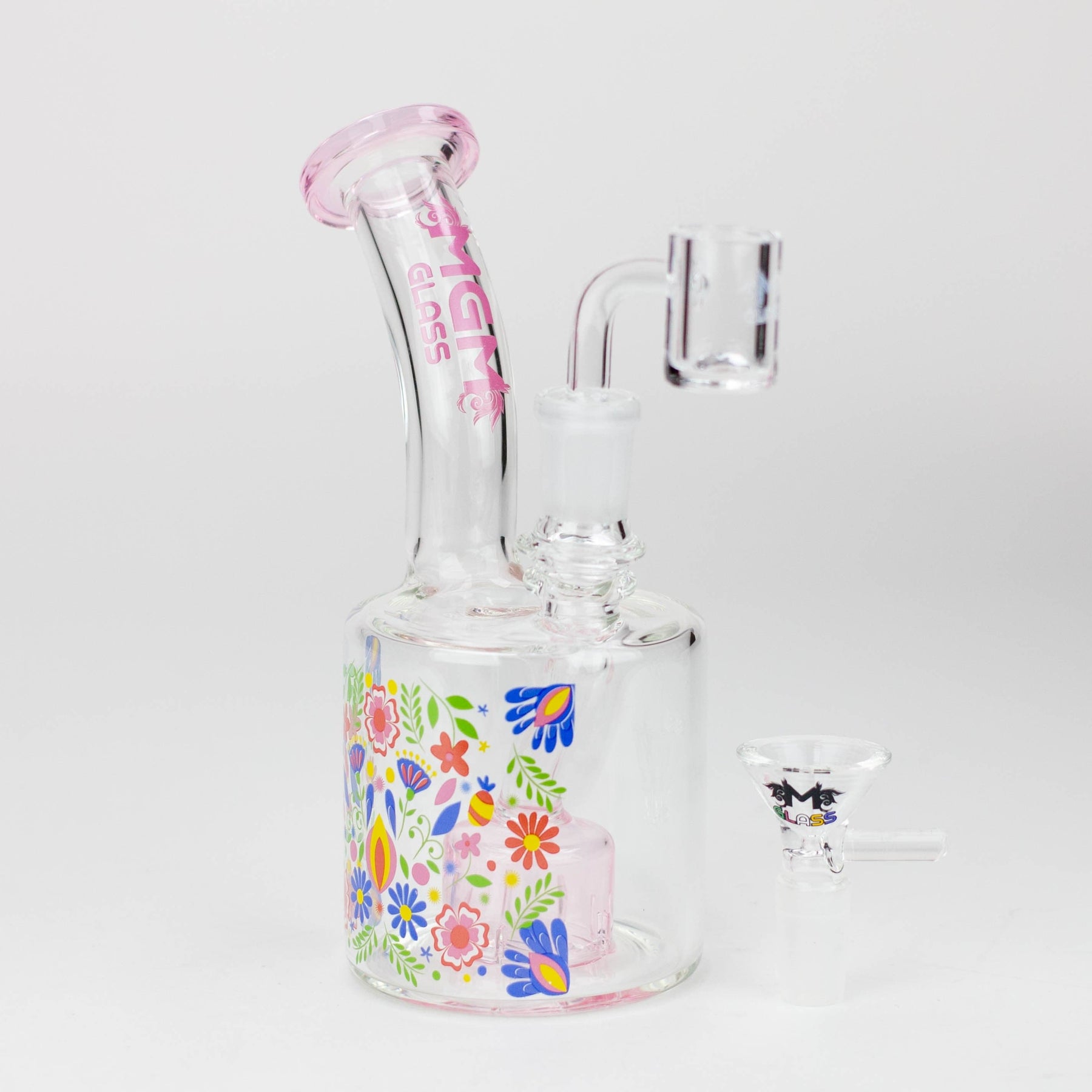 Crafted from highest-grade borosilicate glass, the 6.7" MGM Glass 2-in-1 bubbler stands 70 mm in base and features a detailed water diffuser, a thick bowl for easy connection of a 14 mm female joint, a quartz banger for 14 mm female joint, a stemless design and a bent neck for a unique aesthetic. Assorted designs and a gift box included.