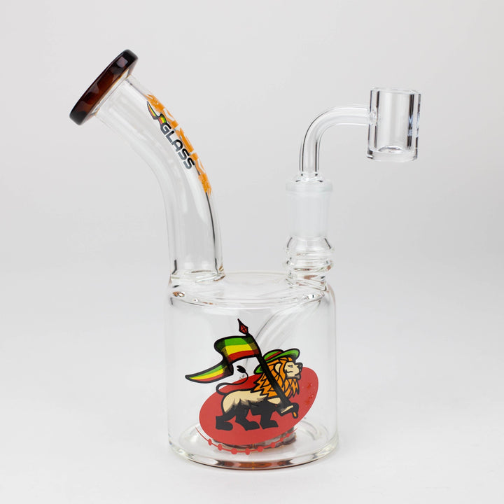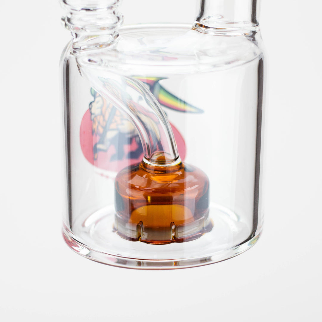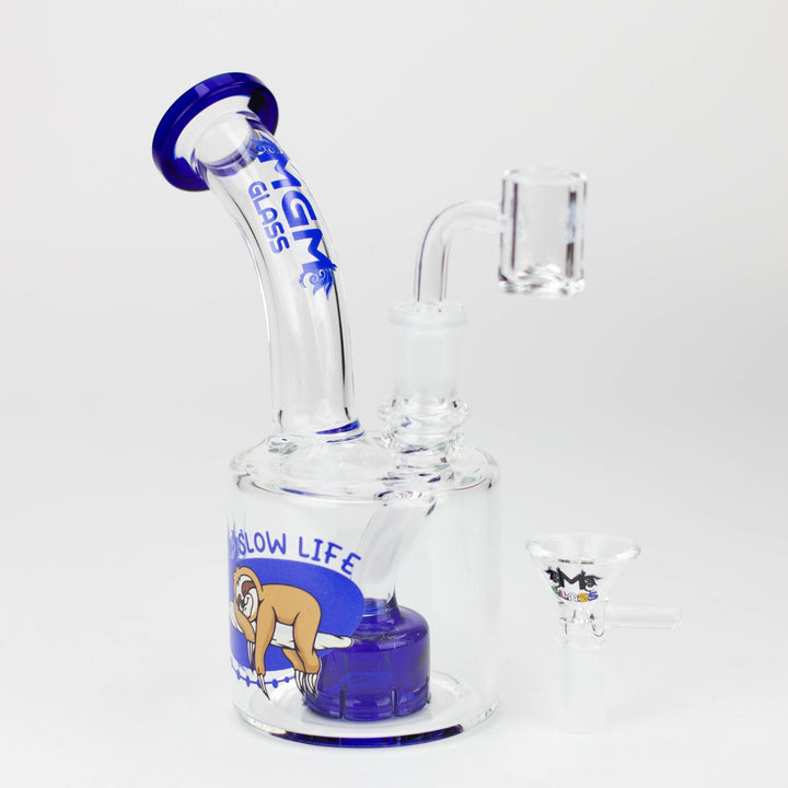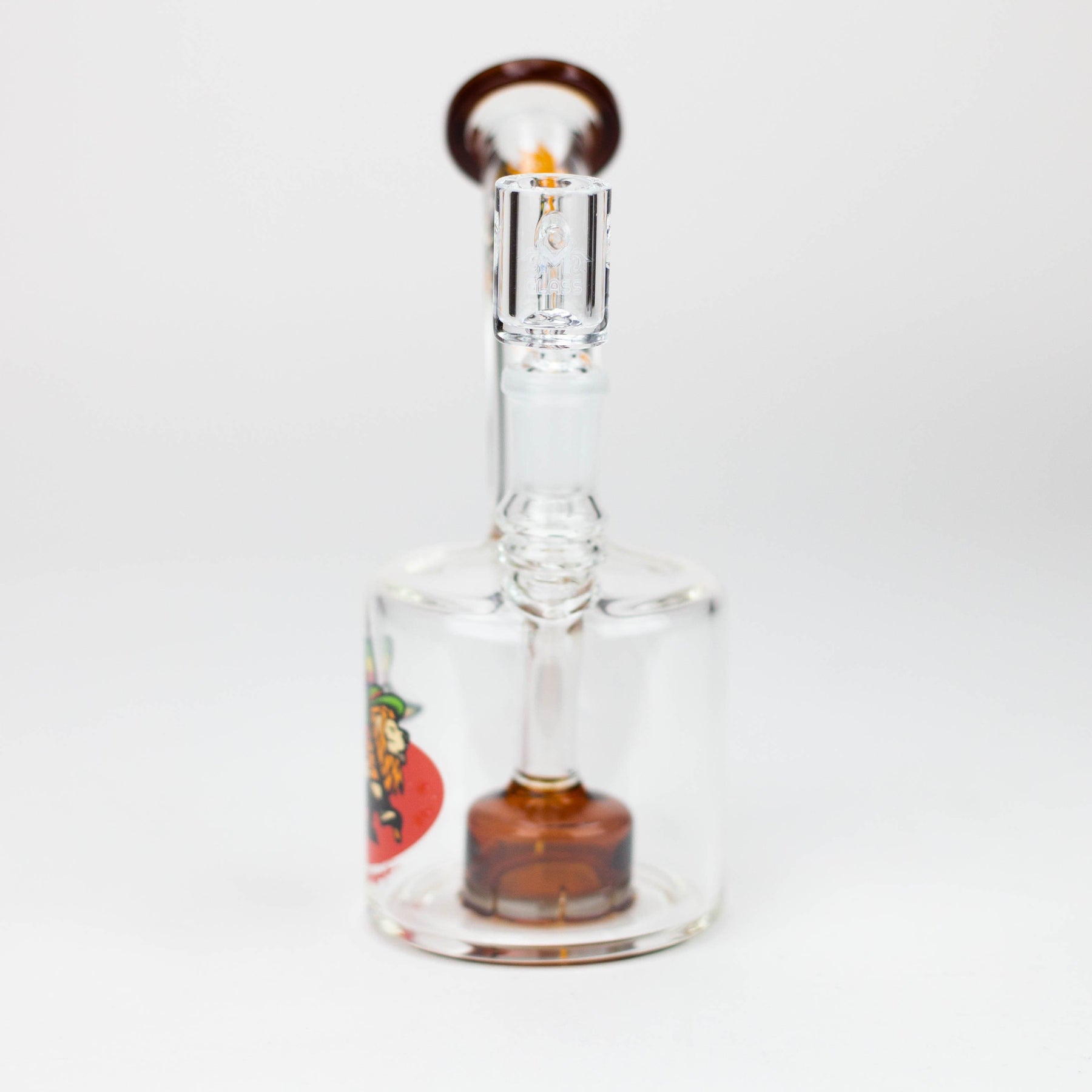 Crafted from highest-grade borosilicate glass, the 6.7" MGM Glass 2-in-1 bubbler stands 70 mm in base and features a detailed water diffuser, a thick bowl for easy connection of a 14 mm female joint, a quartz banger for 14 mm female joint, a stemless design and a bent neck for a unique aesthetic. Assorted designs and a gift box included.