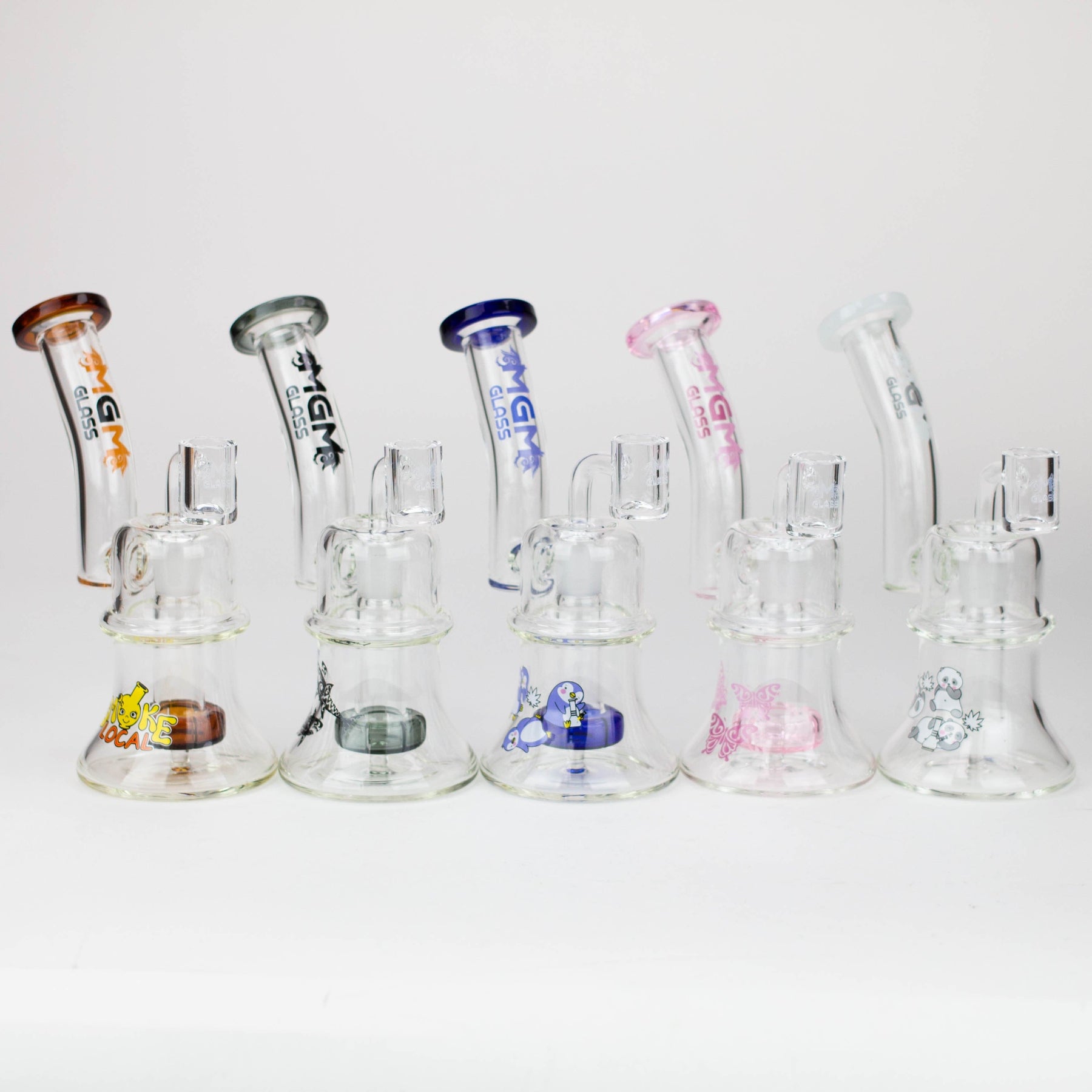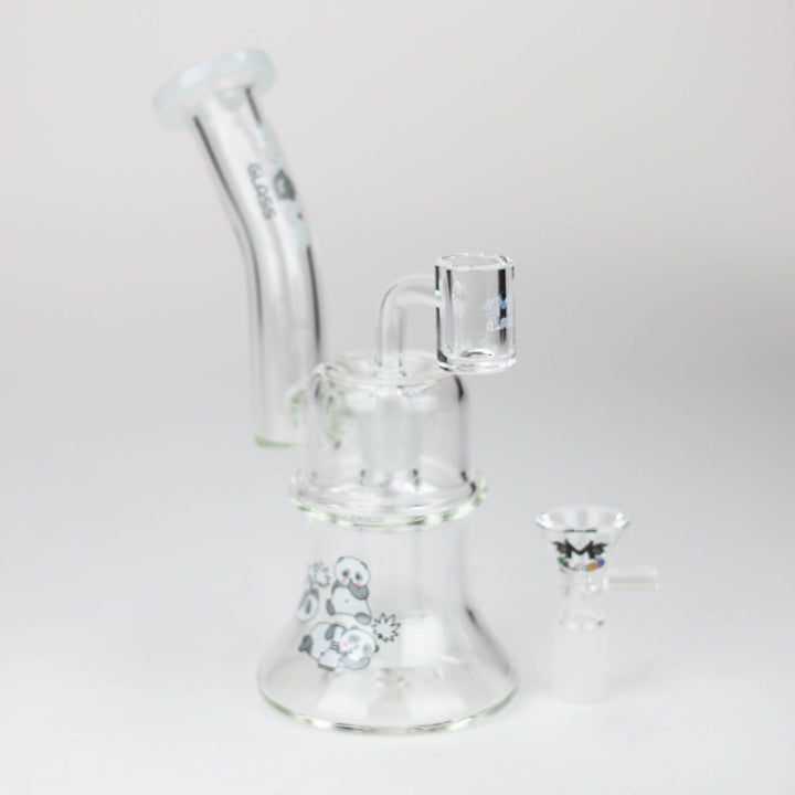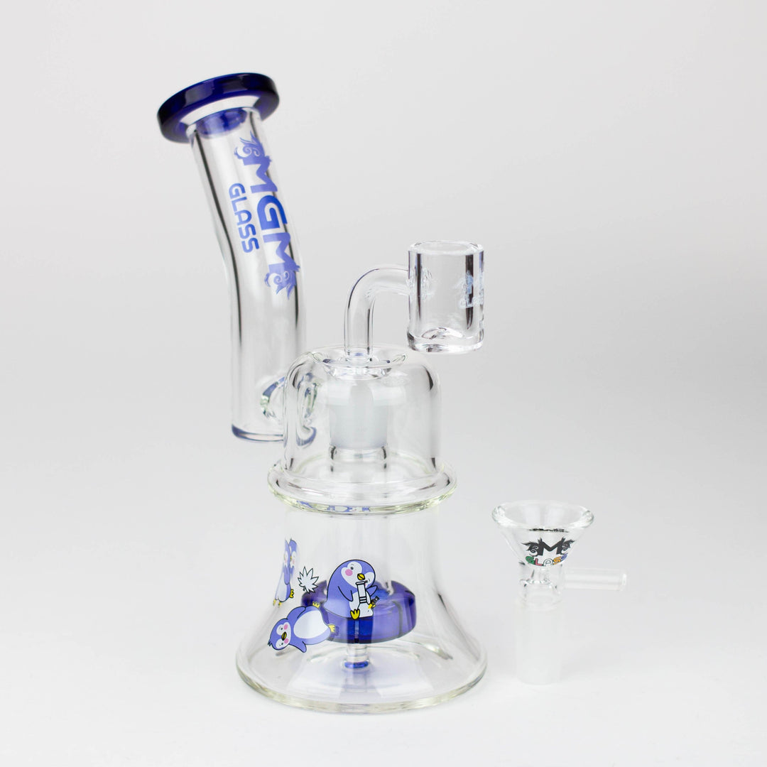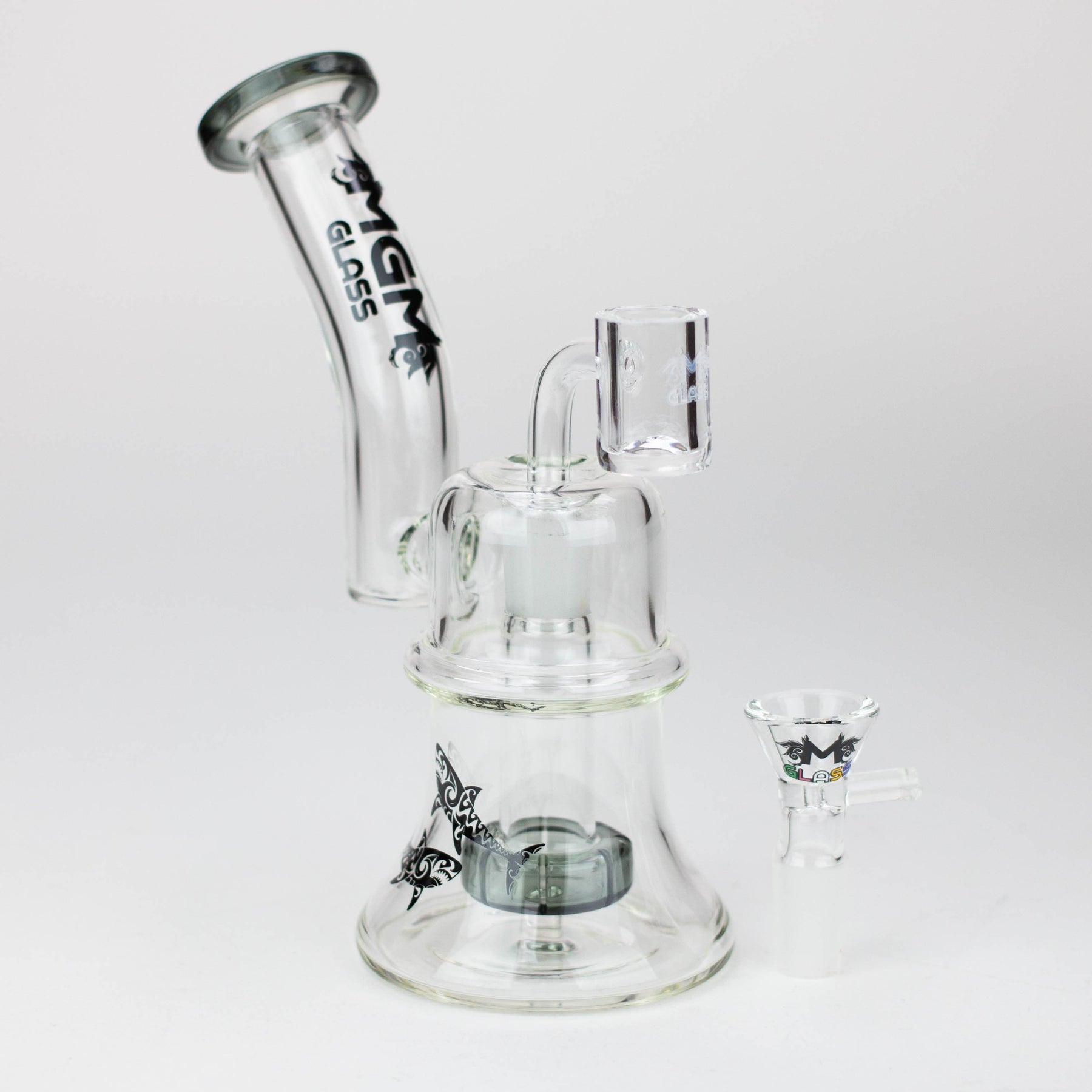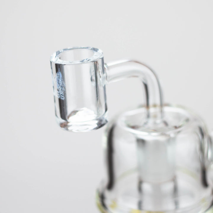 Constructed from high-grade Borosilicate Glass, this 6.9" pipe is equipped with a water diffuser, thick bowl compatible with a 14 mm female Joint, and a Quartz banger for a 14 mm female Joint. Featuring a stemless bent neck, varied designs, and a gift box, it's an ideal choice.