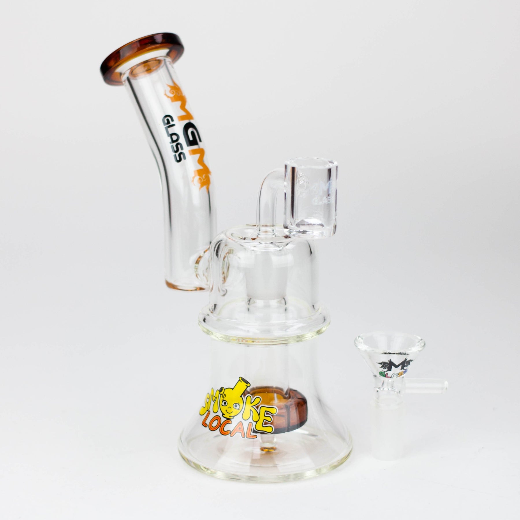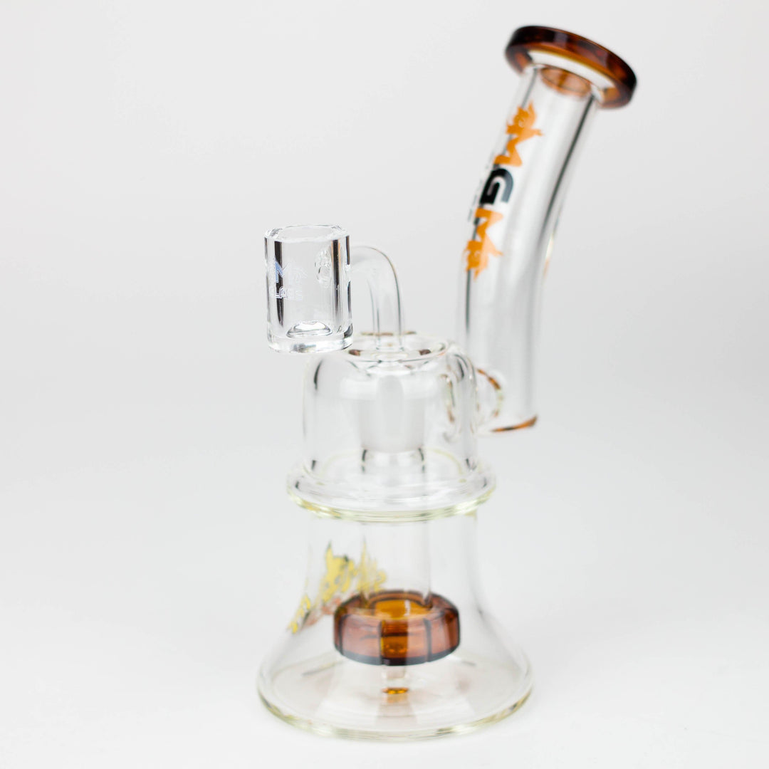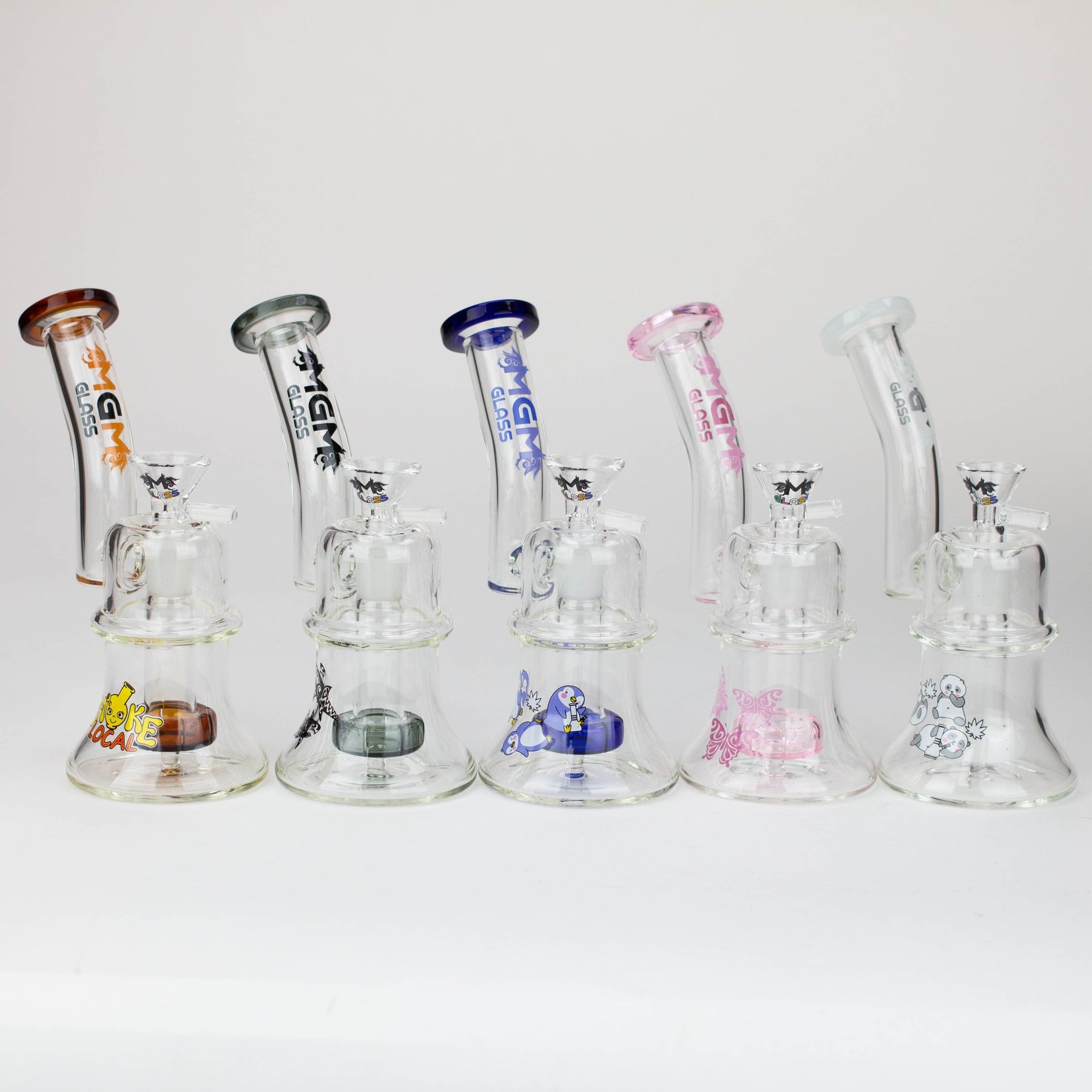 Constructed from high-grade Borosilicate Glass, this 6.9" pipe is equipped with a water diffuser, thick bowl compatible with a 14 mm female Joint, and a Quartz banger for a 14 mm female Joint. Featuring a stemless bent neck, varied designs, and a gift box, it's an ideal choice.