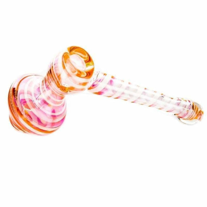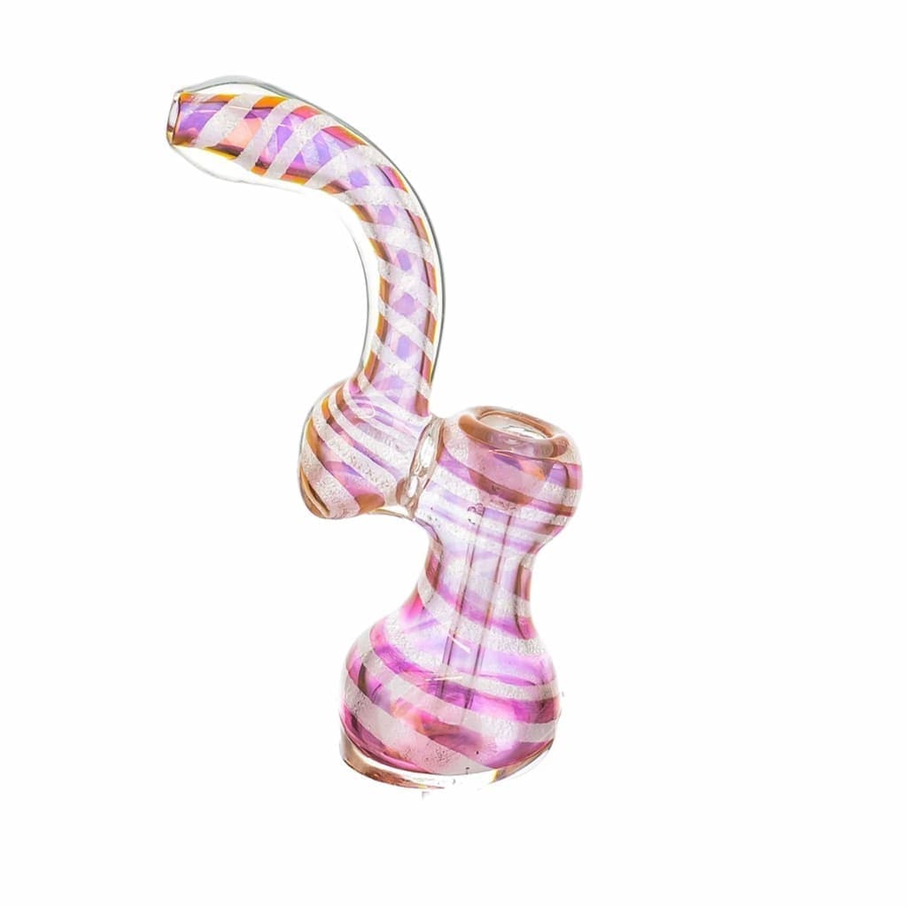 This striped glow-in-the-dark glass bubbler is perfect for pink pipe lovers looking for a durable standup glass pipe with a large marijuana bowl. Available in Sherlock and Hammper glass pipe styles.