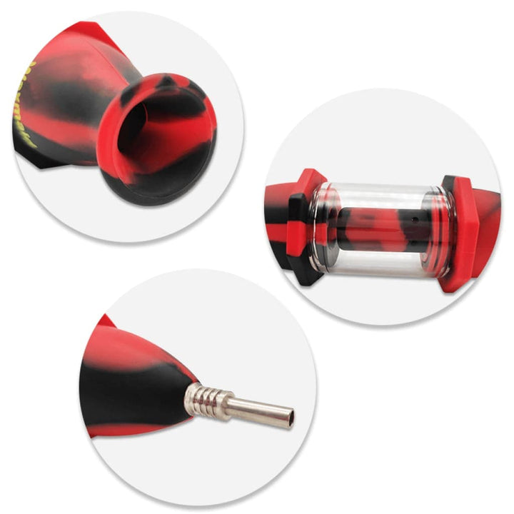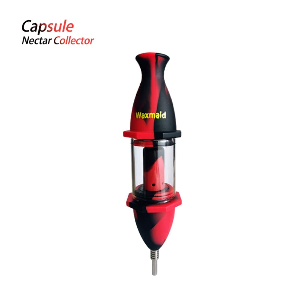 Waxmaid Capsule nectar collector's flexible silicone body connects a thick glass smoke chamber that helps to check out the smoke volume clearly, you can add water and keep water in the glass percolator without spilling, the glass percolator allows you to have the advantages of water filtration like a dab rig but keep it portable, and brings you bigger hits while still keeping smooth hits.