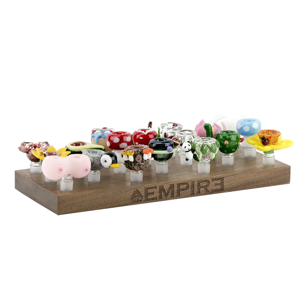 The Empire Wooden Bowl Piece Display showcases Empire Glassworks's commitment to heady glass and functional design. A standout piece for collectors and enthusiasts alike.