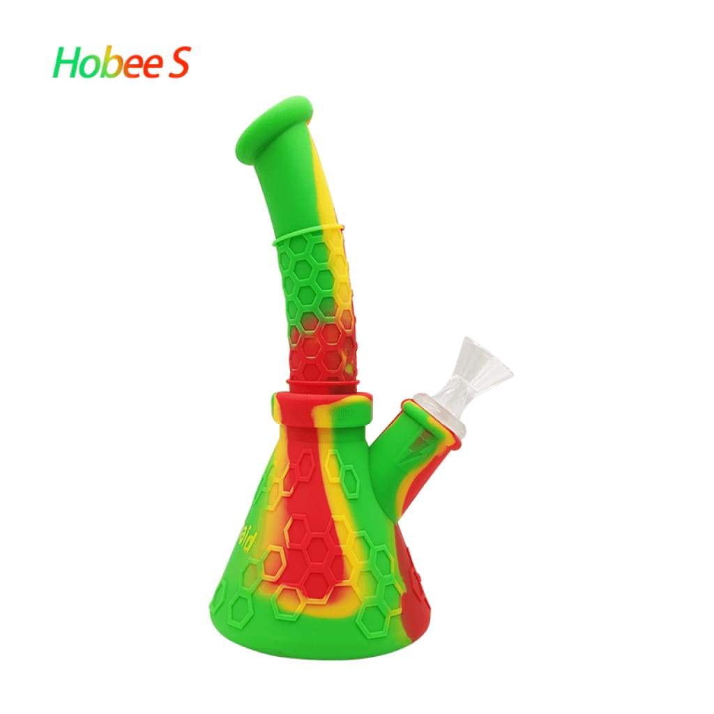 The bottom part of the Hobee S silicone beaker water pipe is detachable for convenient cleanup. Waxmaid Hobee S beaker water pipe comes with a 14mm glass bowl and a glass adapter wrapped in the detachable chamber for safe delivery.