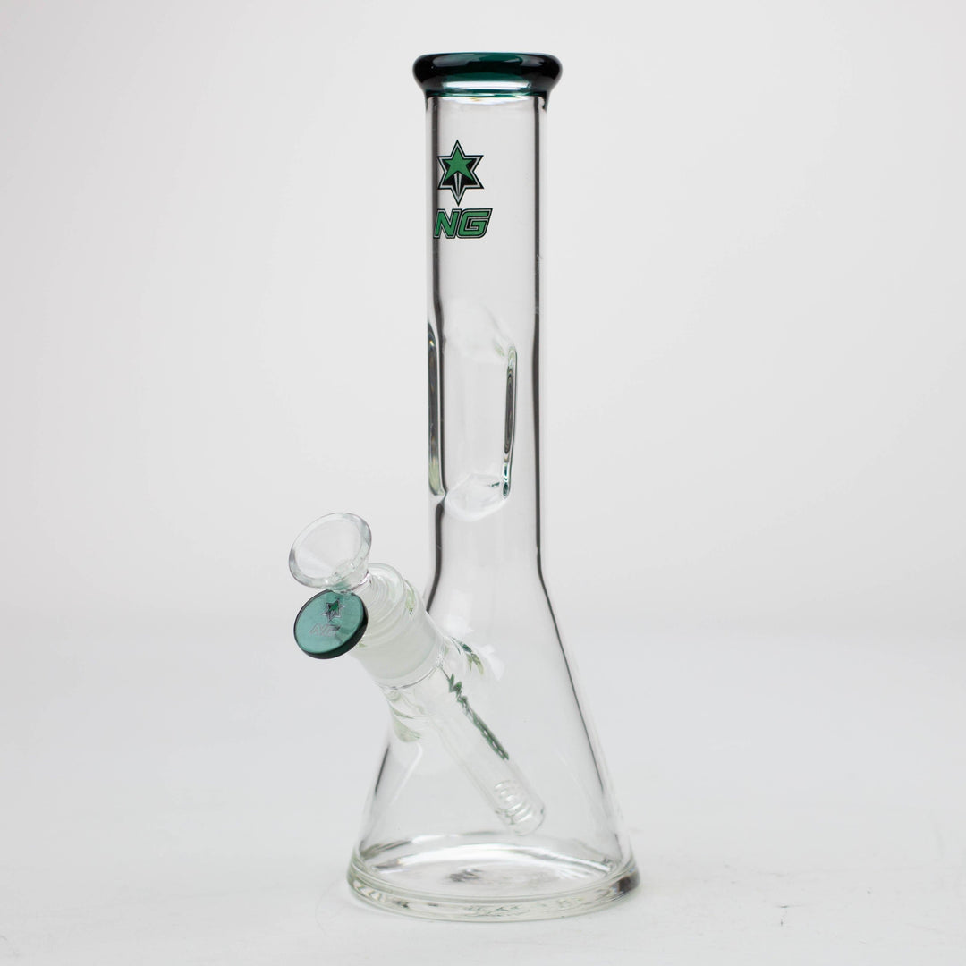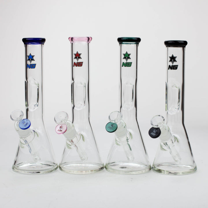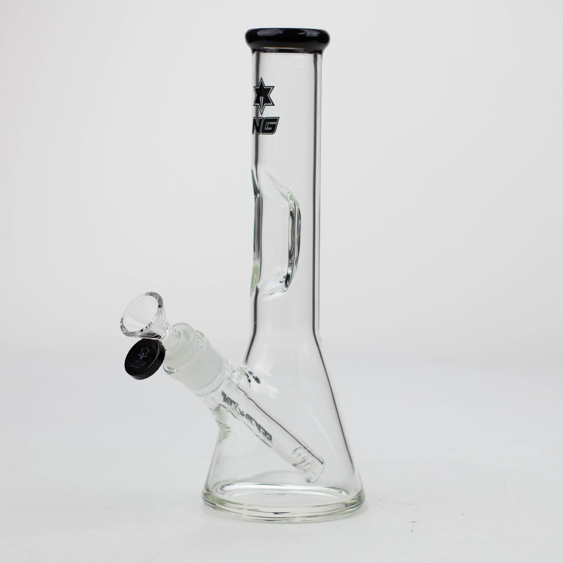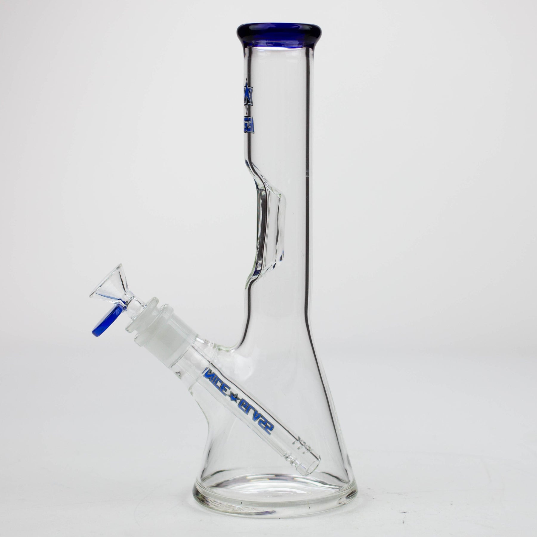 A sleek classic water pipe with clean lines and a single elbow ice pinch. It comes with a large slitted diffuser downstem and a herb bowl. Only the rimmed mouthpiece and bowl roll stopper are colored glass. At just under 11 inches tall, it is the perfect bong for laying back and lounging