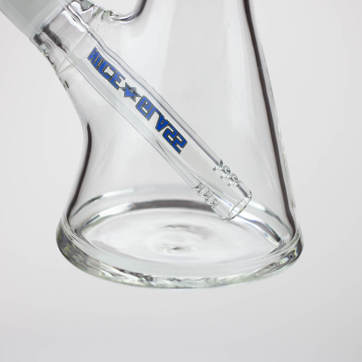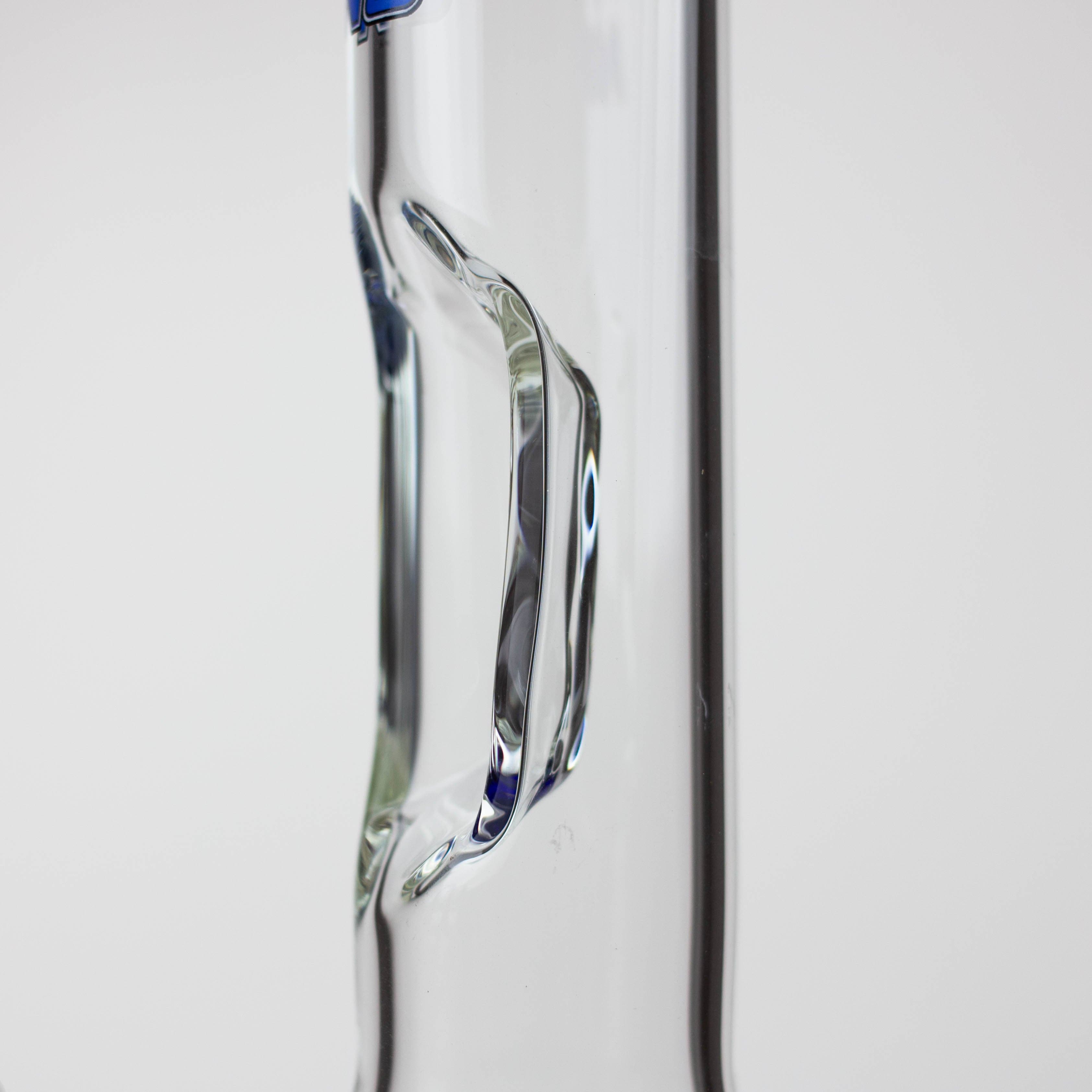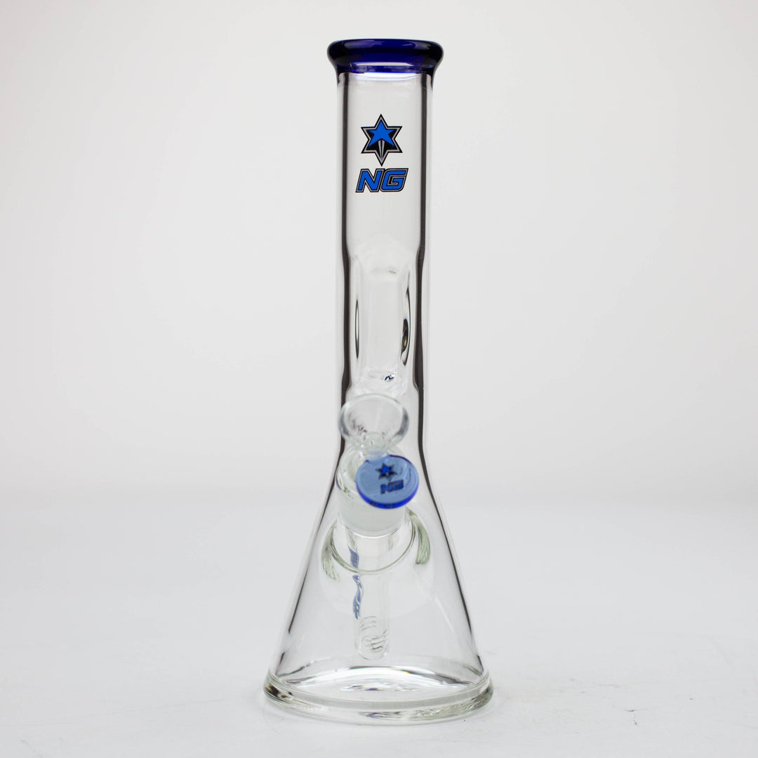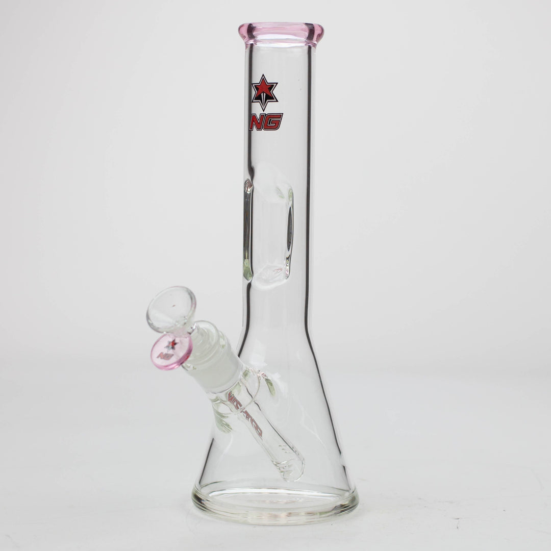 A sleek classic water pipe with clean lines and a single elbow ice pinch. It comes with a large slitted diffuser downstem and a herb bowl. Only the rimmed mouthpiece and bowl roll stopper are colored glass. At just under 11 inches tall, it is the perfect bong for laying back and lounging