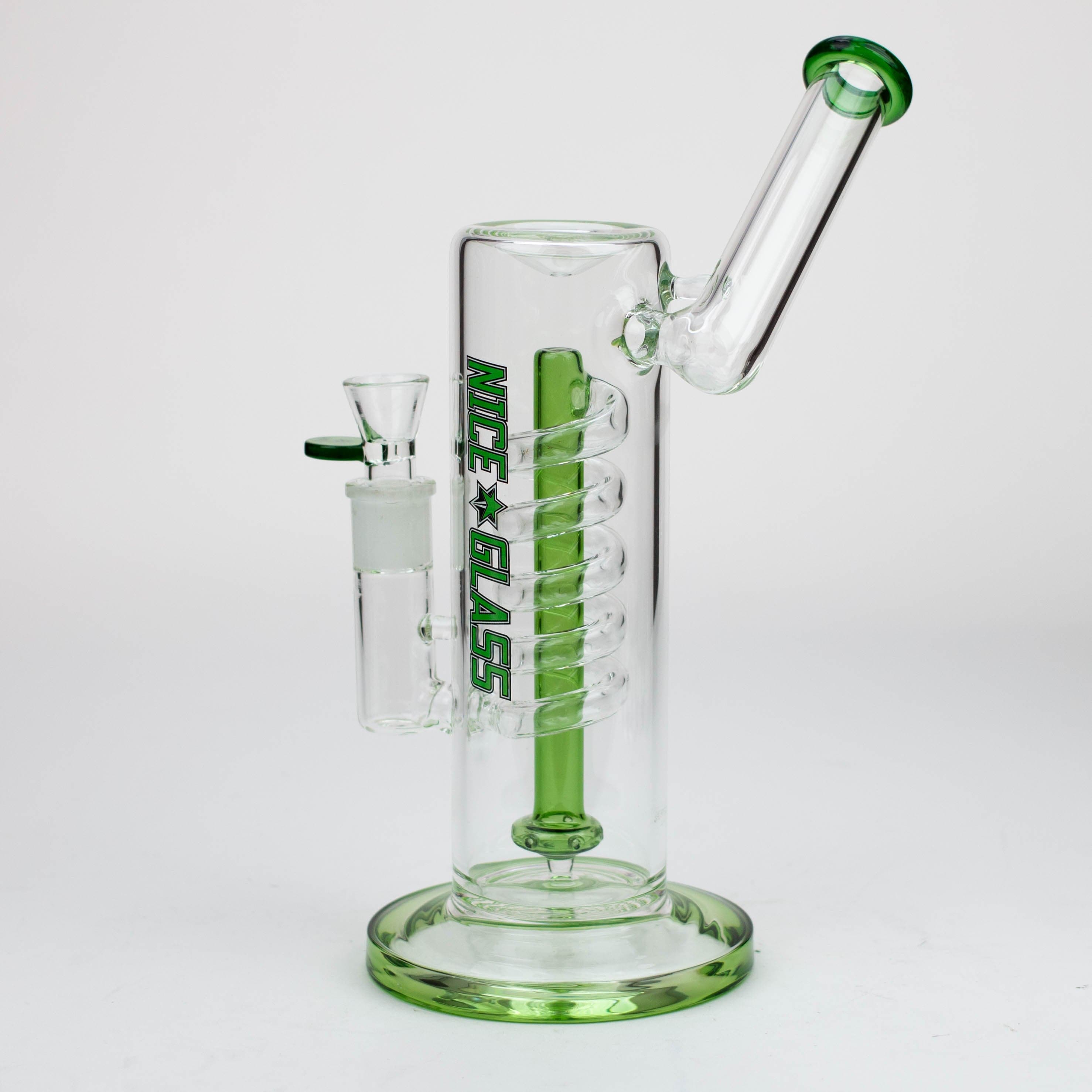 This quality boro piece is solid and sturdy with high cooling efficiency. The action begins with the vapour travelling up through the spiral tube and down to the showerhead percolator. It comes equipped with a flower bowl. Available in a range of colour options.