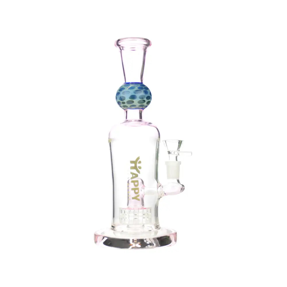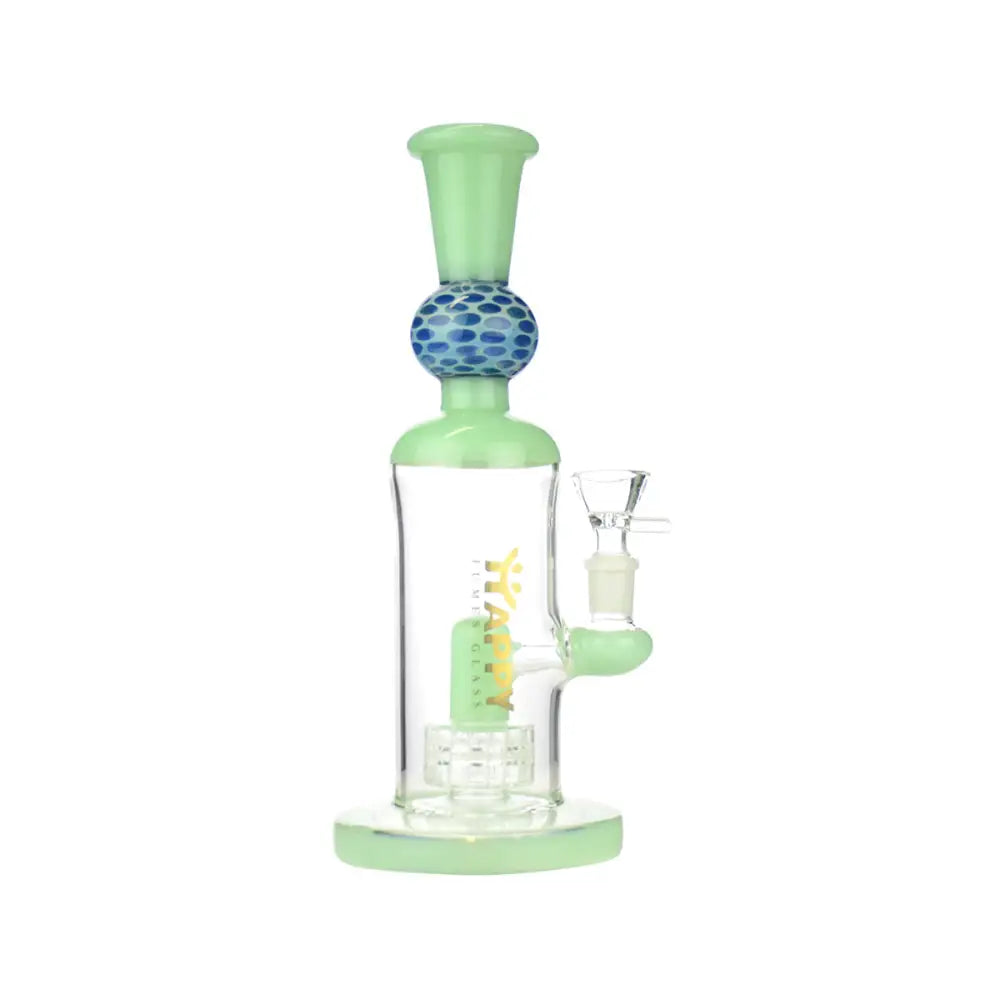 This 10" HAPPY FUMES GLASS Water Pipe is expertly crafted with a Honeycomb Sphere Neck and Matrix Shower for maximum filtration. Its 14mm Male Bowl provides a smooth and enjoyable smoking experience. Made with high-quality materials, this water pipe is both durable and efficient - perfect for any connoisseur.
