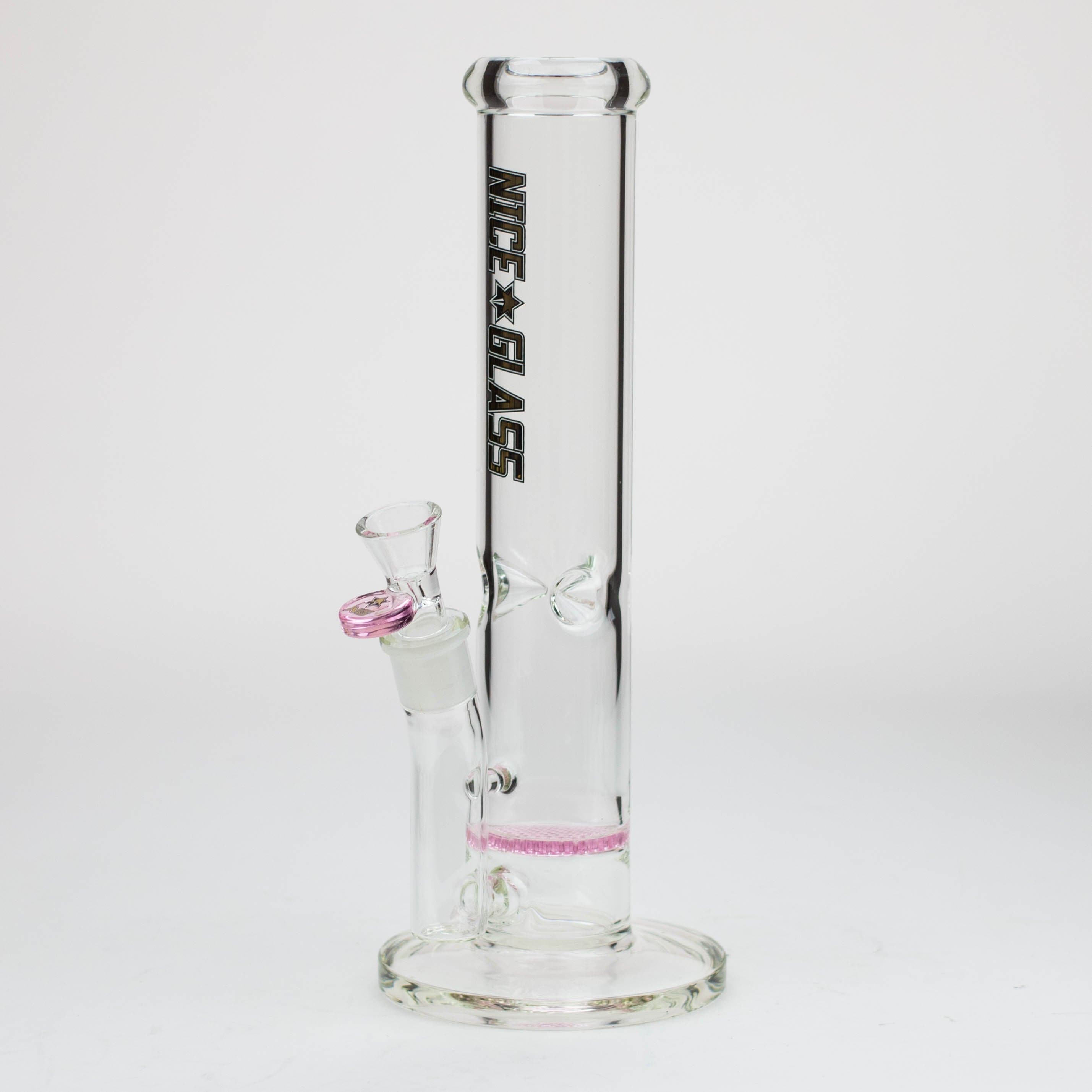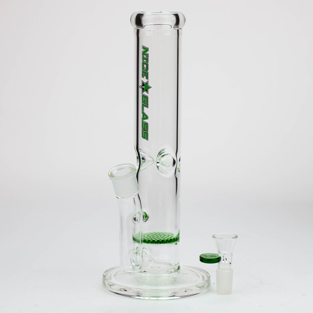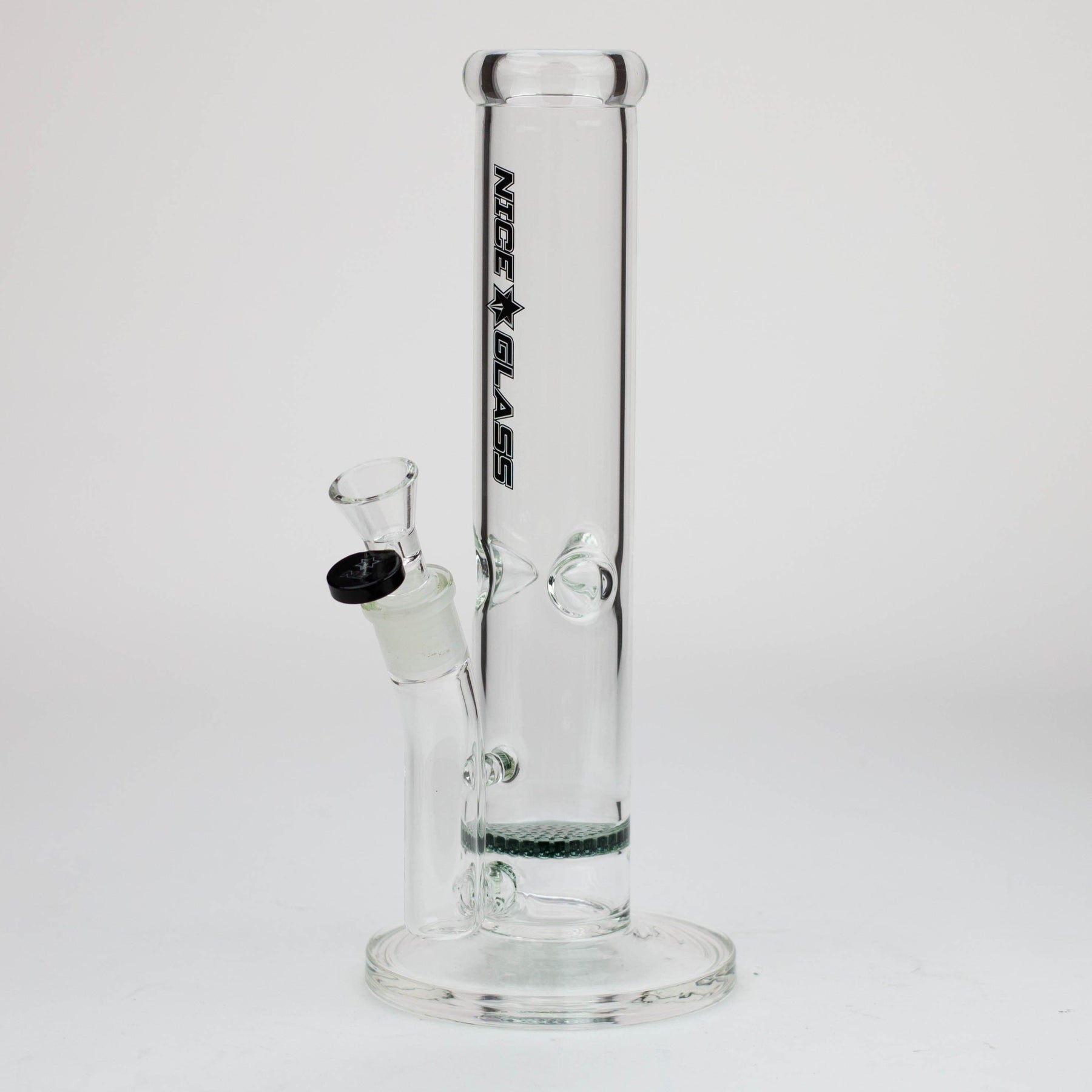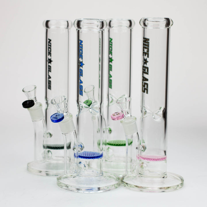 This simple straight bong has a reinforced downstem, herb bowl and ice notches. It features a single honeycomb disc percolator that provides just the right amount of diffusion required for a smooth hit. The mouthpiece is thick and gives you a tight seal while smoking. The longer neck allow for a few ice cubes is all you need to cool it even further.