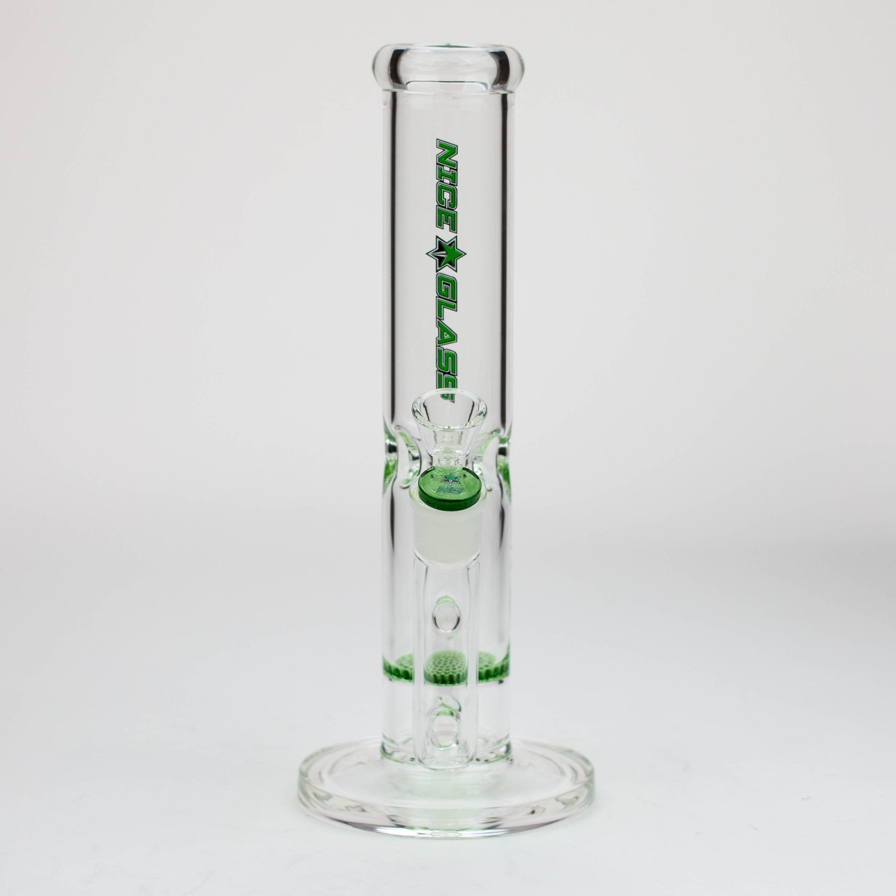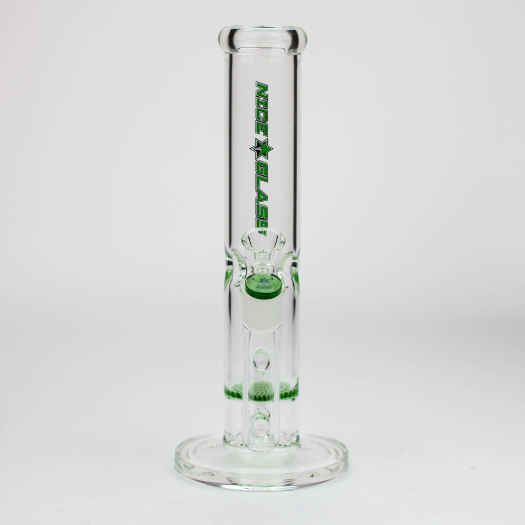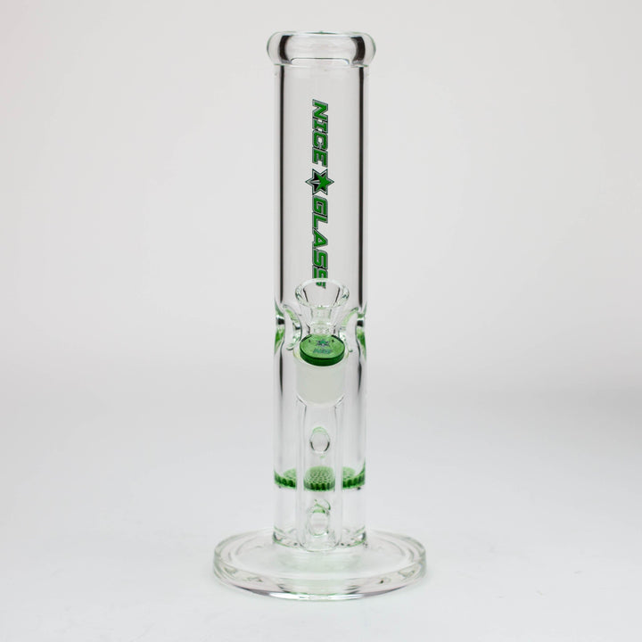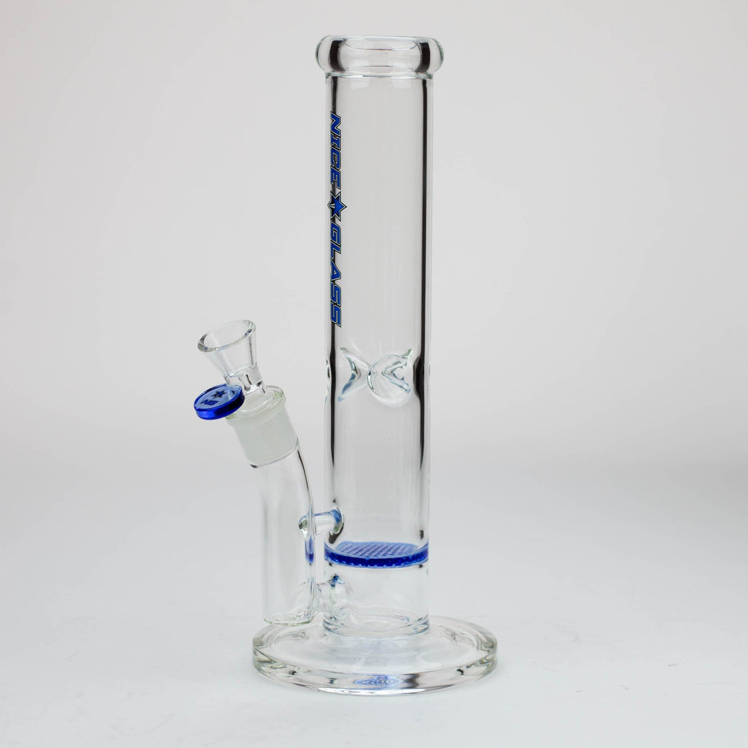 This simple straight bong has a reinforced downstem, herb bowl and ice notches. It features a single honeycomb disc percolator that provides just the right amount of diffusion required for a smooth hit. The mouthpiece is thick and gives you a tight seal while smoking. The longer neck allow for a few ice cubes is all you need to cool it even further.