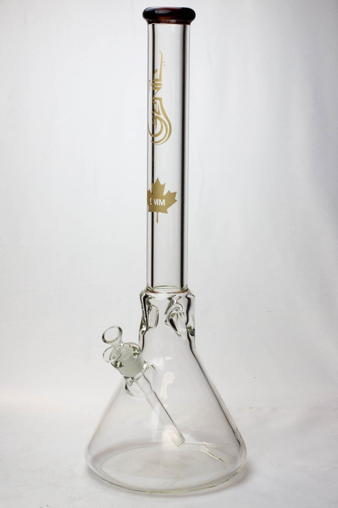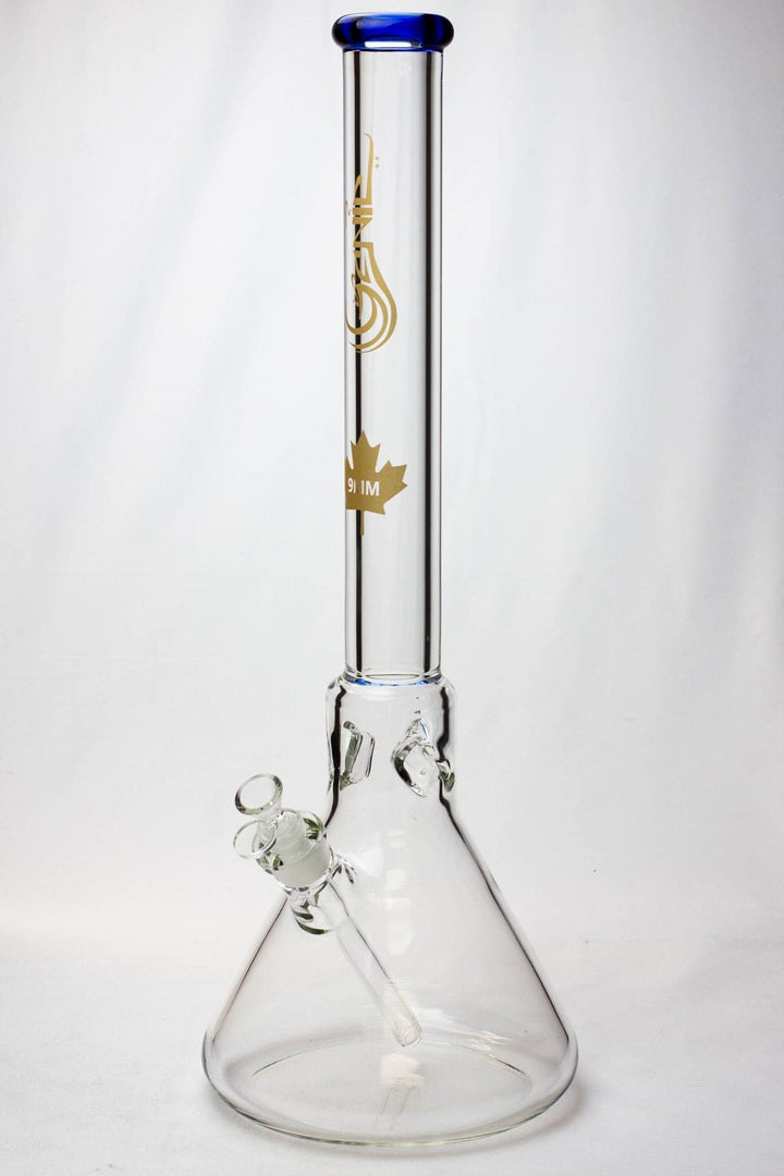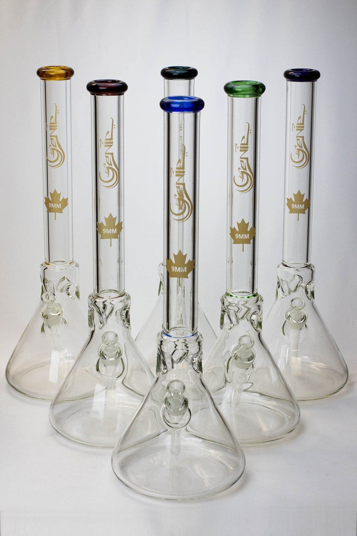 This 23 inches height is simple classic style beauty bong. by Genie Glass. Producing 9 mm thickness tubing is very costly to product but it is well worth due to its gorgeous looks. Extra-thick, heavy, 9 mm borosilicate glass is used to make beaker-shaped bong with an unusual percolator! Ice notches in the tube allow you to drop in a few cubes and get an even cooler toke!