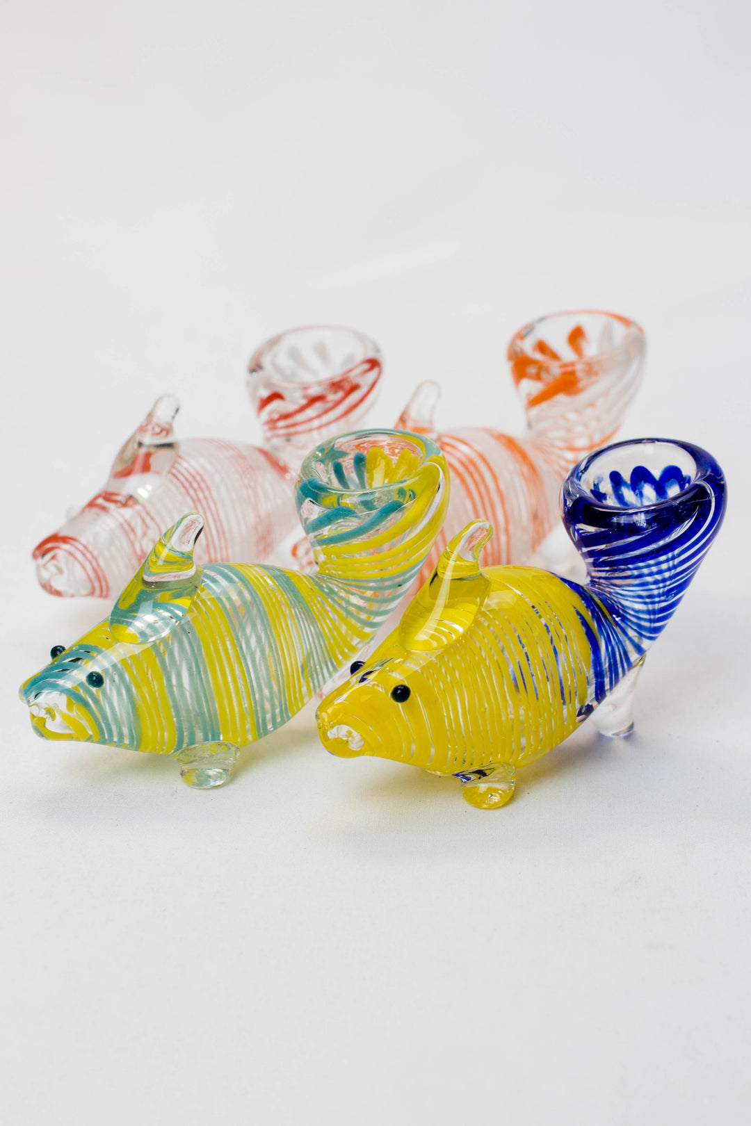 As much as we love bongs there is just something too classic about pipes. It also helps that pipes have literally been used for thousands of years. They can be often seen at museums and it always warms our heart to see a pipe thousands of years old. To see another person like us thousands of years ago enjoying herbs ' yeah we can relate. These soft glass hand pipes look beautiful and have a goldfish design. Do note that the pattern and color of your pipe may be a bit different from what you see in the picture.