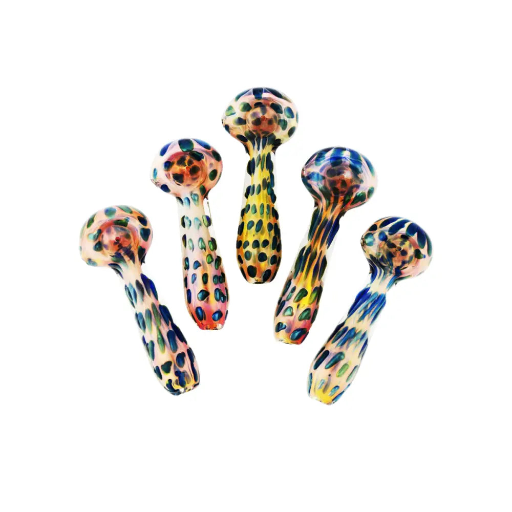 This 4.5" Hand Pipe Spoon features double glass construction with a striking gold fume design and a unique bubble trap art feature. Crafted with precision and expert craftsmanship, it offers a smooth and enjoyable smoking experience. Elevate your smoking game with this functional and stylish hand pipe.