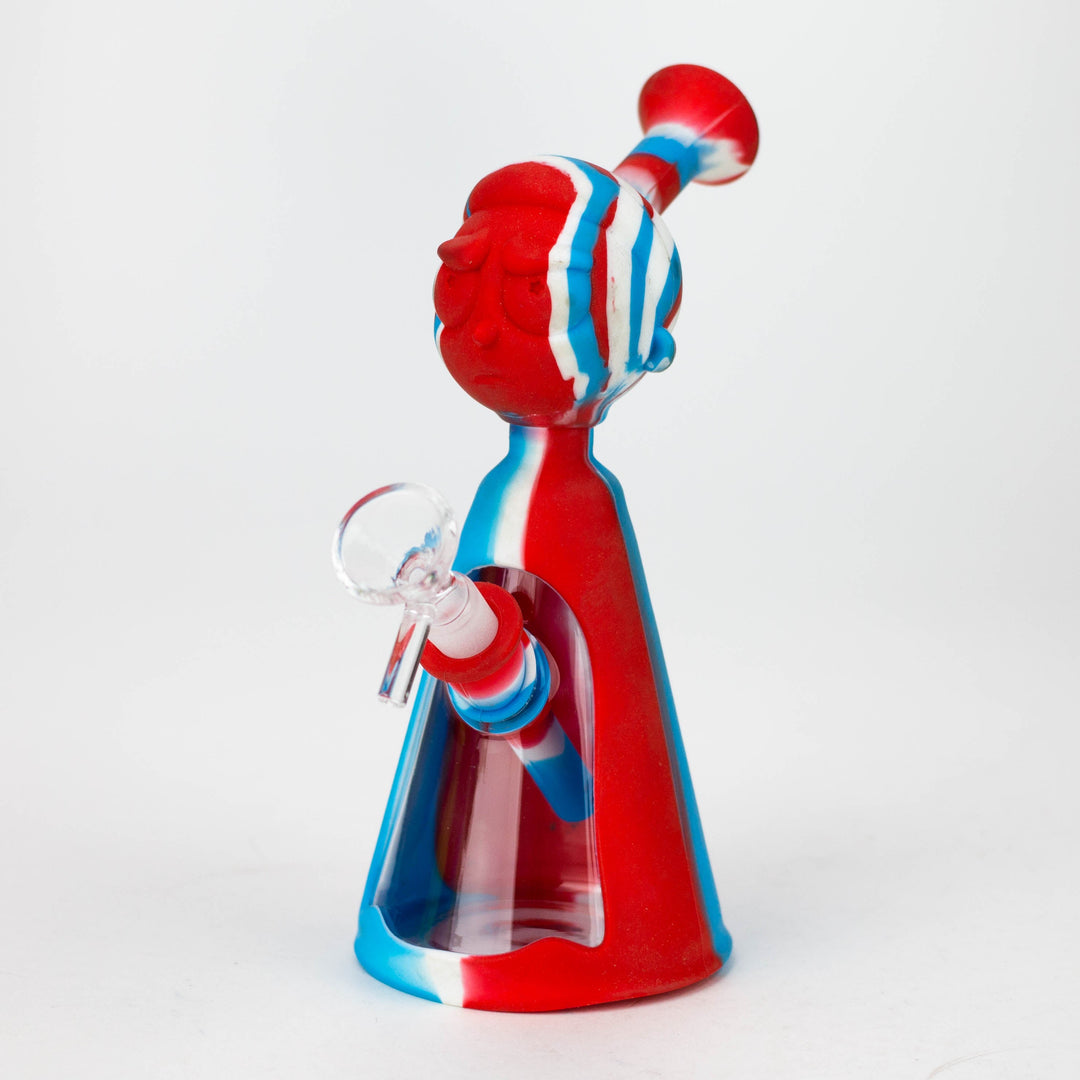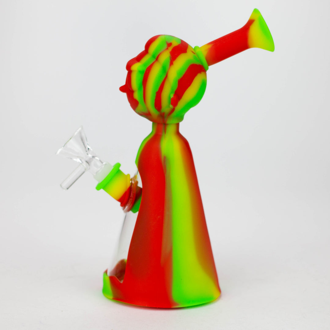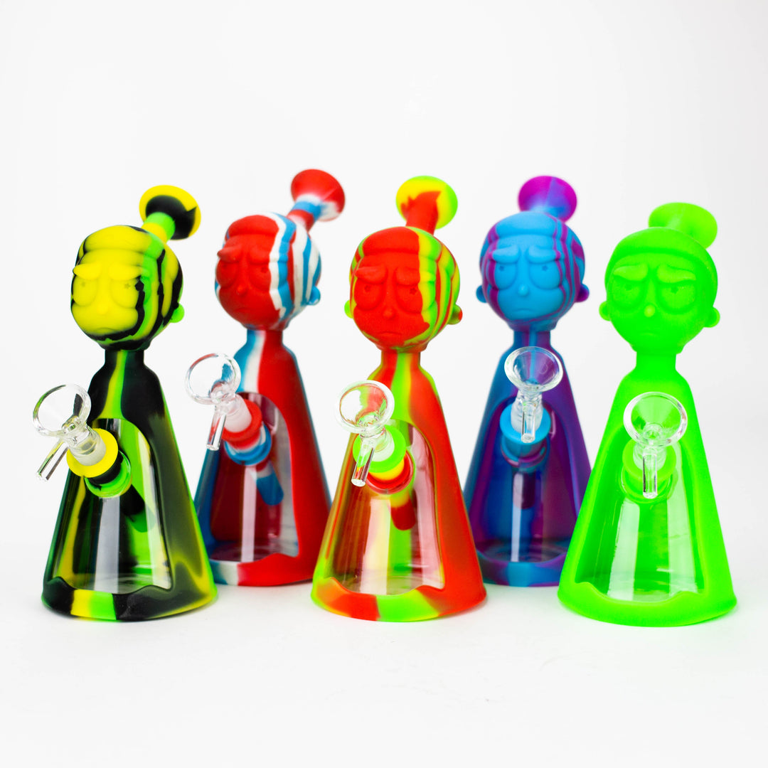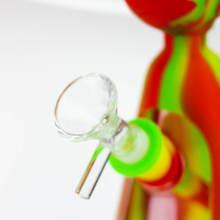 Weary of shattering and replacing glass bongs? Constructed from food grade silicone, the 7-inch long silicone bong boasts a detachable glass bowl and 4" removable silicone down stem. Its thick bowl is designed for a 14mm female joint, and its RM Cartoon shape base ensures a lifetime of use