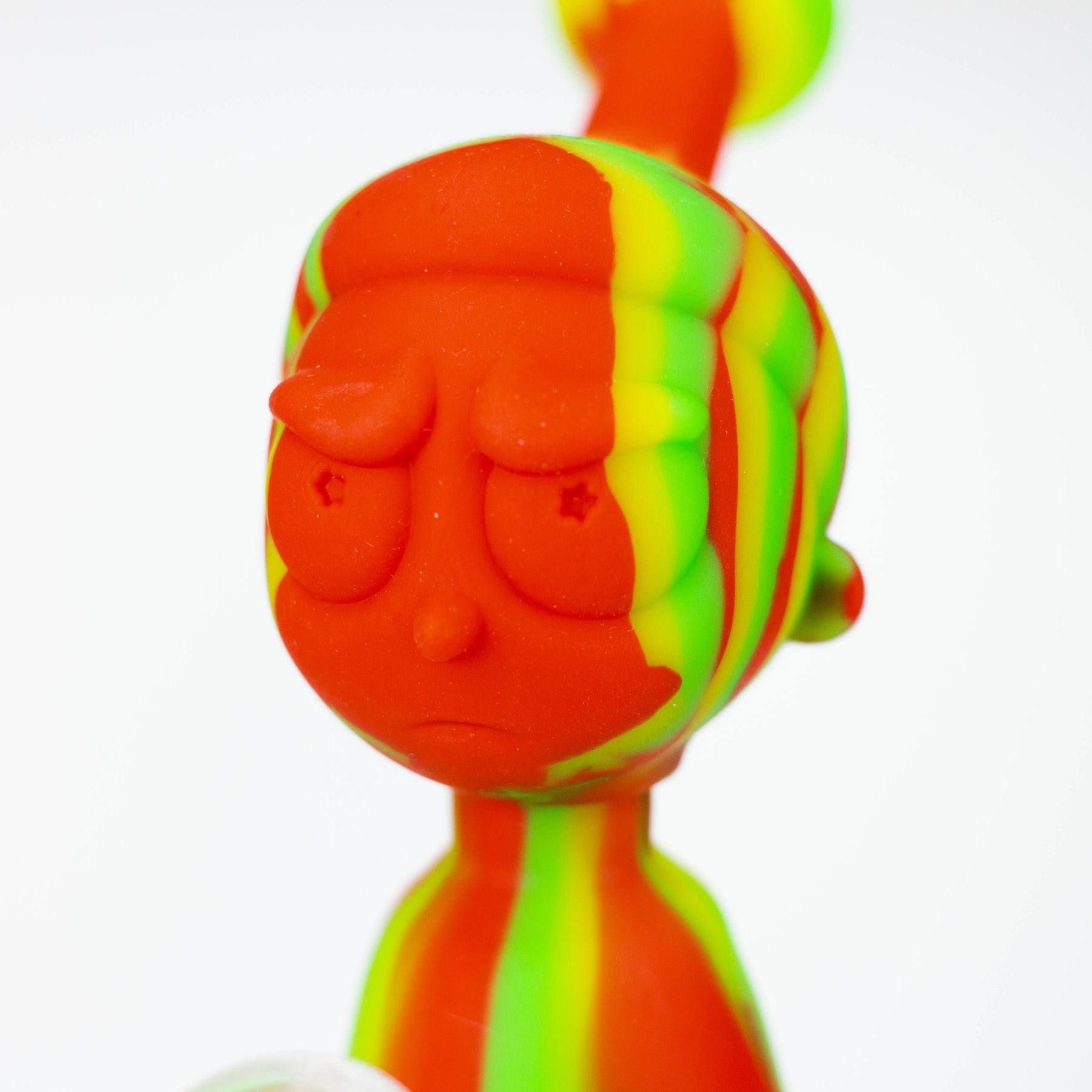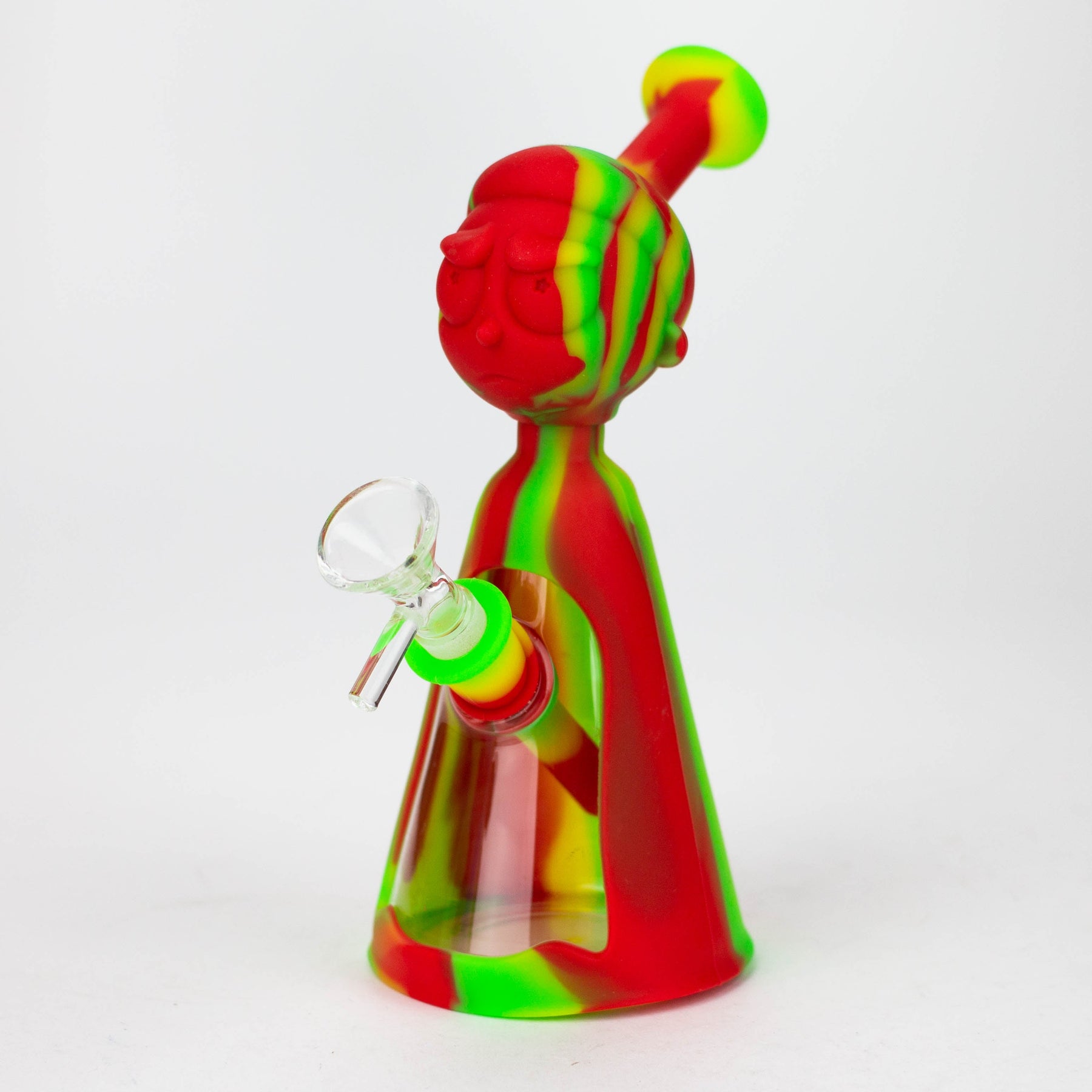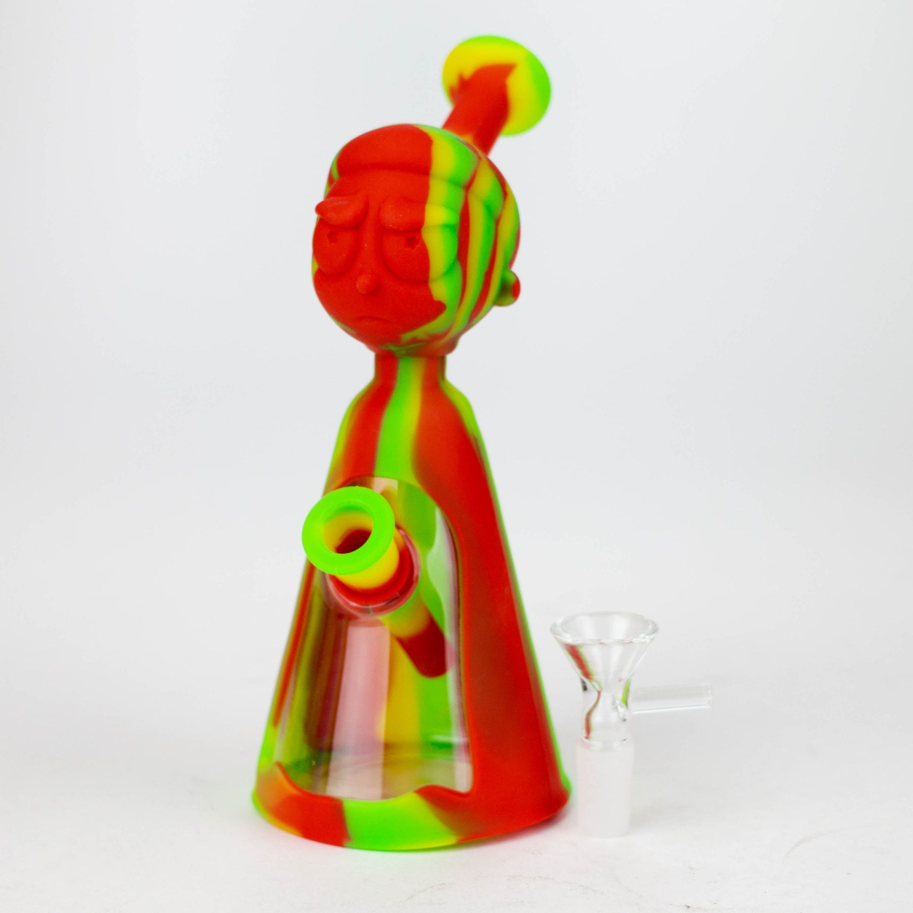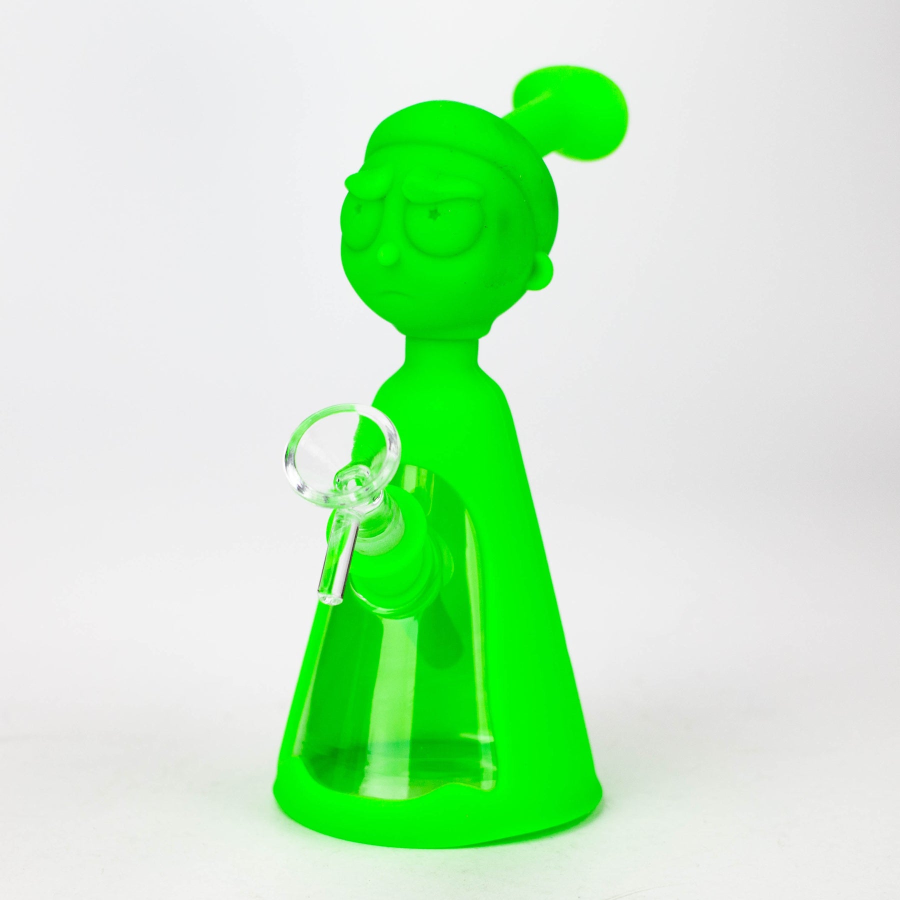 Weary of shattering and replacing glass bongs? Constructed from food grade silicone, the 7-inch long silicone bong boasts a detachable glass bowl and 4" removable silicone down stem. Its thick bowl is designed for a 14mm female joint, and its RM Cartoon shape base ensures a lifetime of use