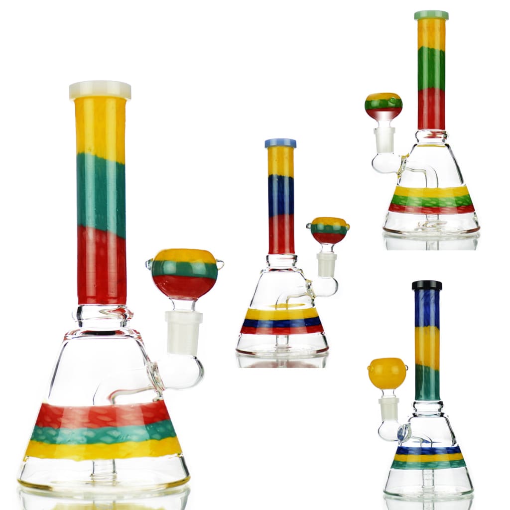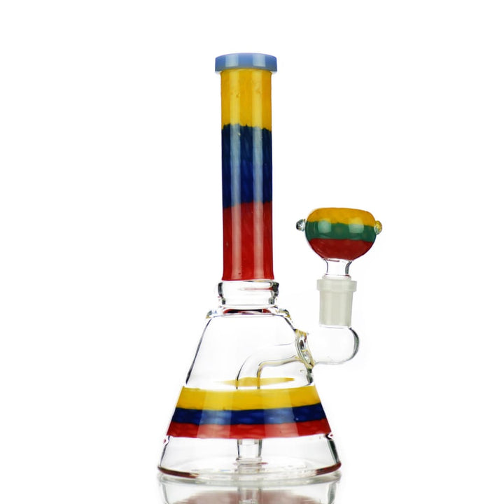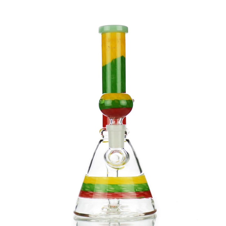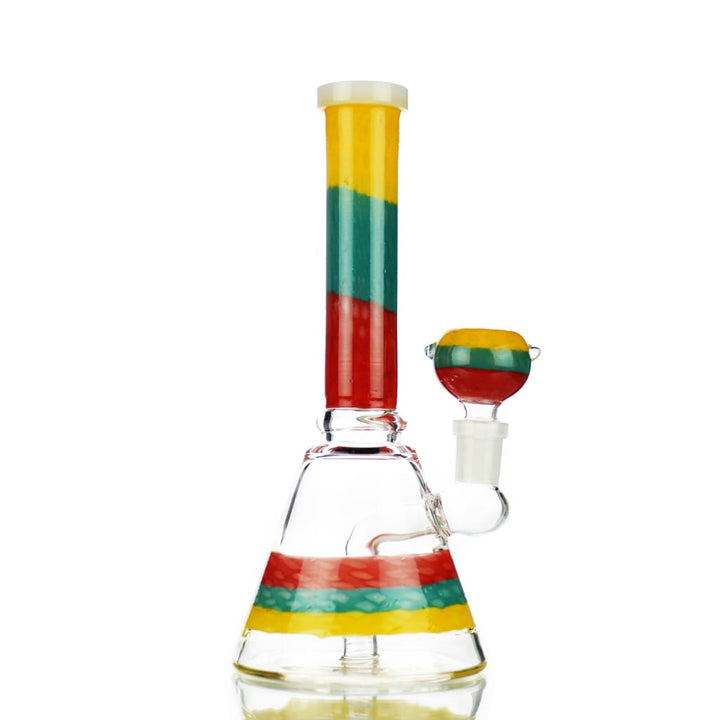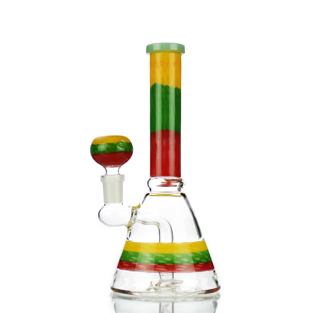 Make a statement with this 8" Rasta-colored beaker. Its 14mm male bowl ensures a smooth smoke session. Enjoy the high-quality craftsmanship and vibrant design.
