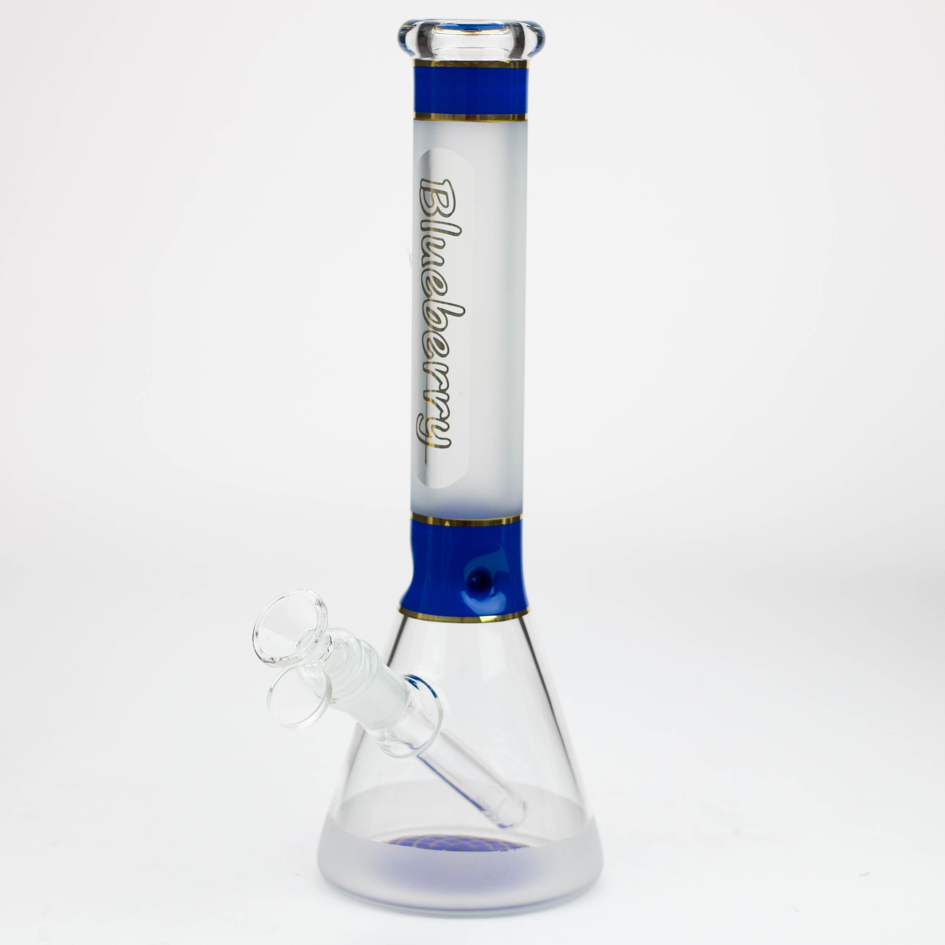 This is a solid beaker with a frosted neck and a mandala pattern on the base in the same colour accent as the ice pinch. It comes with a herb bowl and slitted downstem. This is a mini version of our 18 inch Nice Glass ST016 beaker of the same style.