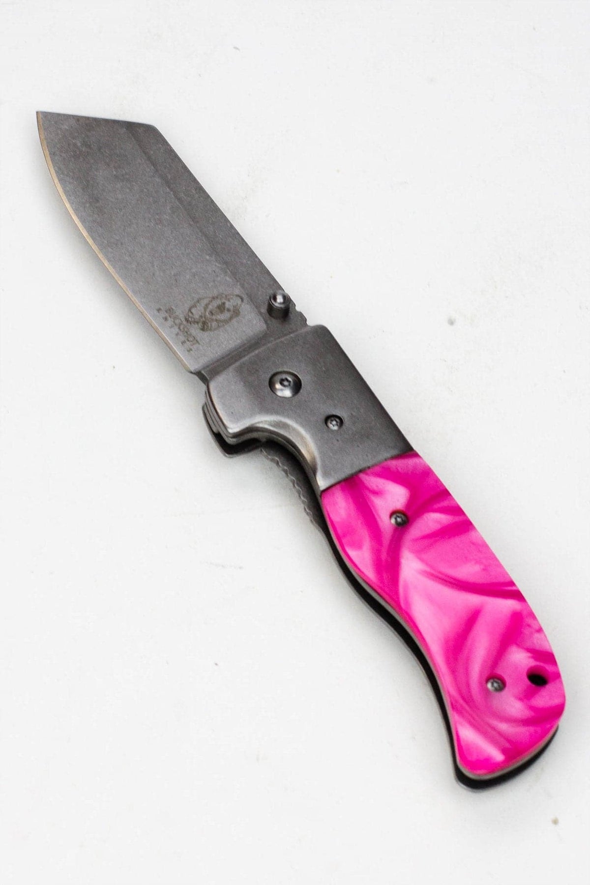 Tactical outdoor rescue hunting knife are designed for smooth and efficient opening with a reduction in friction for rapid blade deployment. A sturdy liner lock secures the blades while in use. These new knives feature a convenient deep pocket carry clip for easy carry.