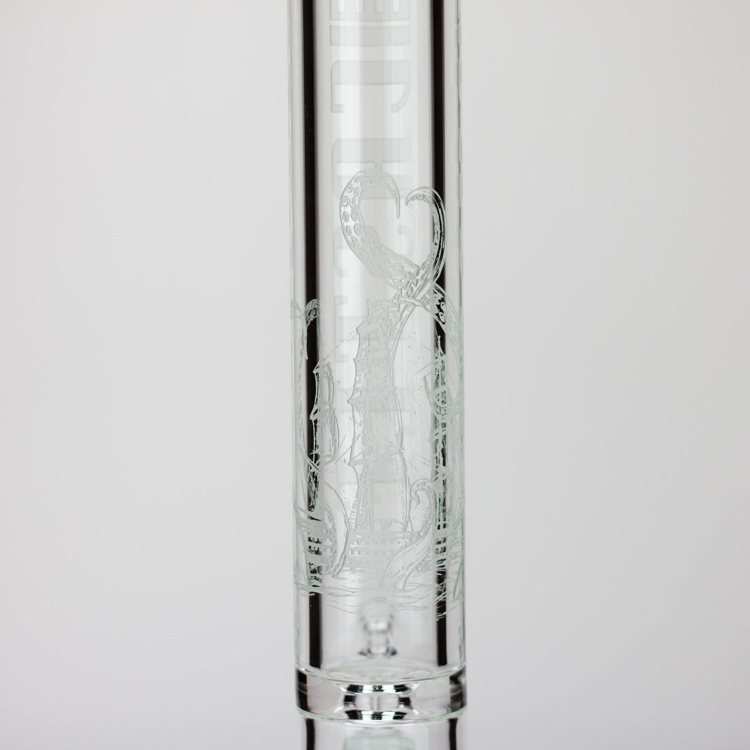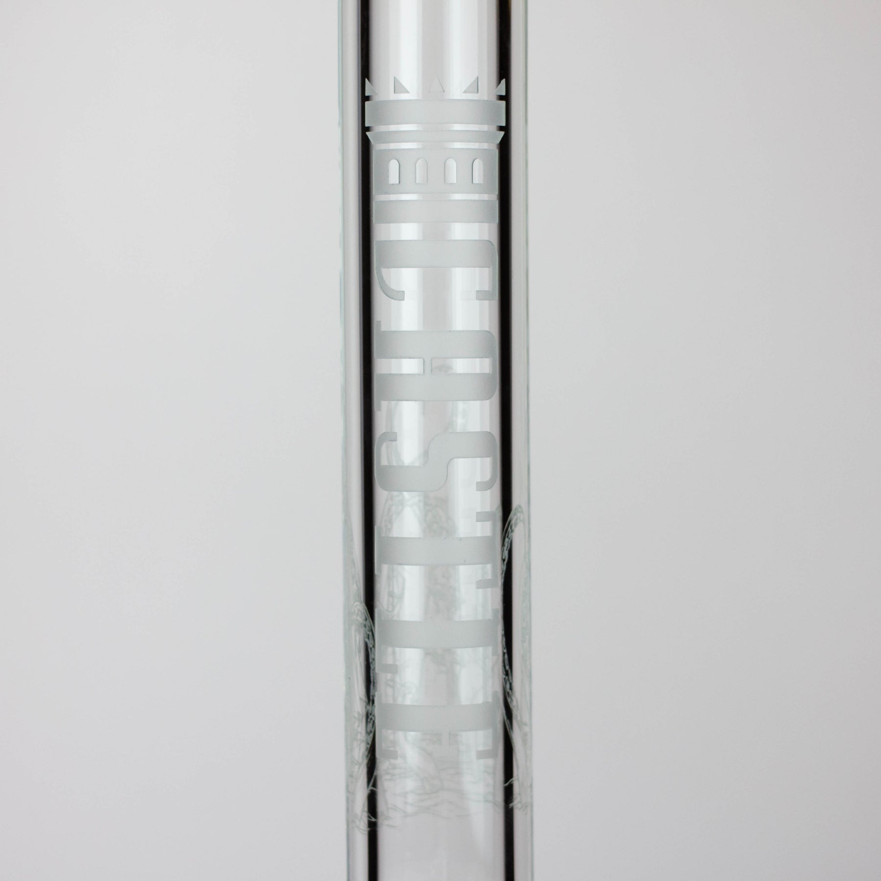 The patterns, laser etched into the glass, wraps the entirety of the tube, giving it a unique and eye-catching appeal. This bong comes equipped with a deep bowl, ensuring a nice and even burn every time.