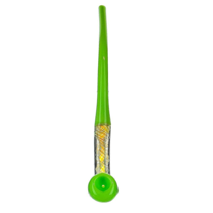 The Churchwarden pipe is a Gandalf glass marijuana pipe made from borosilicate glass, whose style can be traced to the late eighteenth or early nineteenth century. This churchwarden pipe is 11.5 inches long and is made for smokers who love reading books. In Germany, this style is referred to as "Lesepfeife" or "reading pipe," because the longer stem allowed an unimpeded view of one's book, and smoke does not form near the reader's eyes. This popular glass pipe is available in Opal Purple and Slime Green options and is certainly a must-have for pipe smokers.