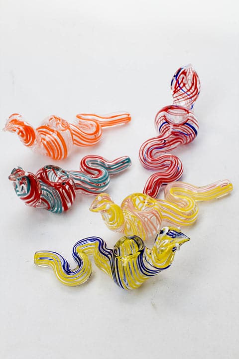 As much as we love bongs there is just something too classic about pipes. It also helps that pipes have literally been used for thousands of years. They can be often seen at museums and it always warms our heart to see a pipe thousands of years old. To see another person like us thousands of years ago enjoying herbs ' yeah we can relate. These soft glass hand pipes look beautiful and have a very funky elephant design. Do note that the pattern and color of your pipe may be a bit different from what you see in the picture.