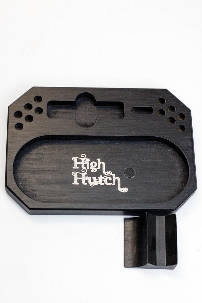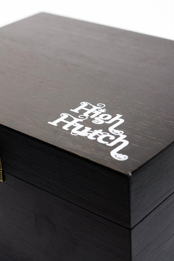 The multipurpose metal ashtray/rolling tray is printed with the High Hutch logo to match the accessories in a visually appealing set. The tray is the perfect size to fit in the box.
