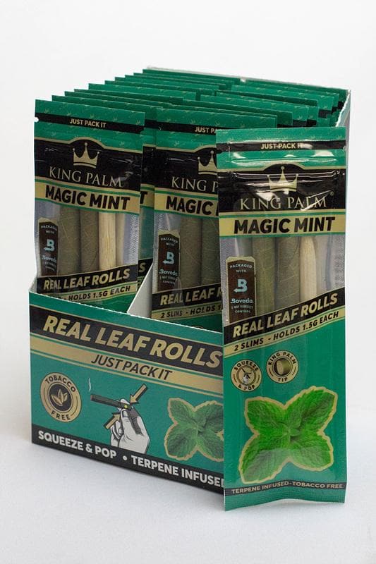 Made from natural leaf rolls that are individually handpicked and cleaned with purified water. No toxic fertilizers are used in the processing, chemical, and preservative-free. Each King Palm is also individually hand-rolled & tobacco-free