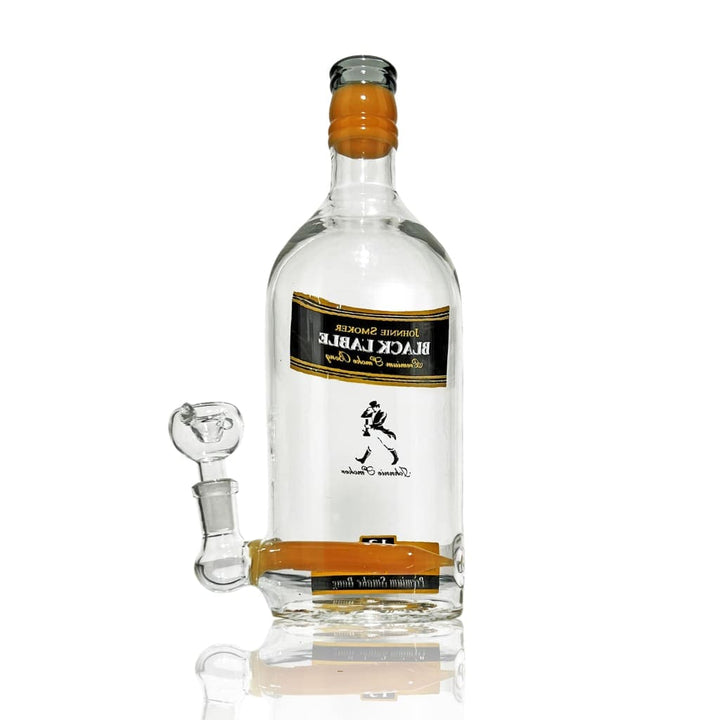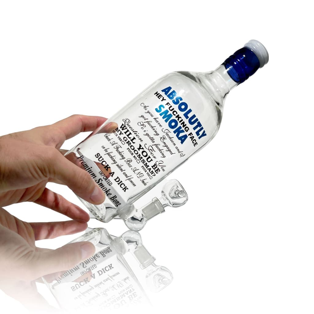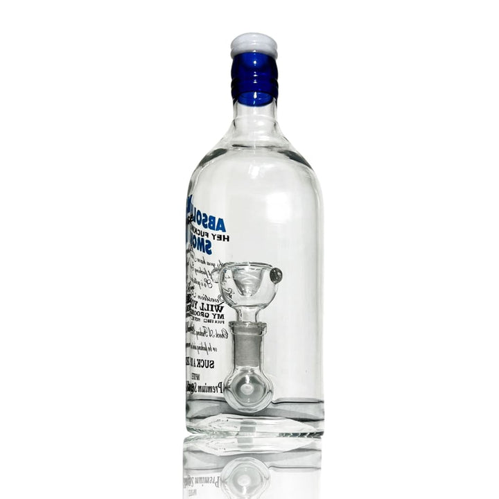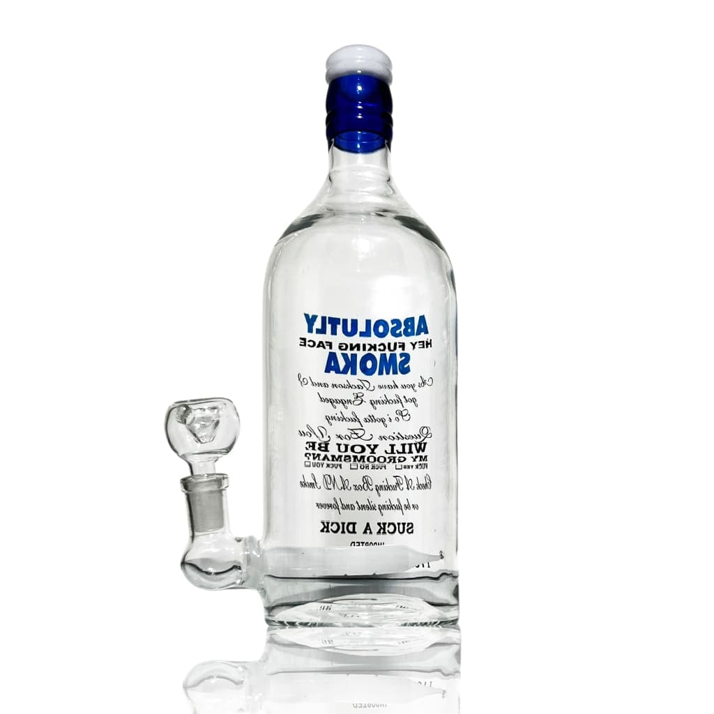 Enhance your smoking experience with the Absolutly Liquor Bottle Water Pipe. This stunning water pipe is made from high-quality borosilicate glass in a heavy-duty liquor bottle design and features a 14mm glass-on-glass downstem. Flower bowl and/or quartz dabbing rig sold separately. Downstem location may vary slightly.
