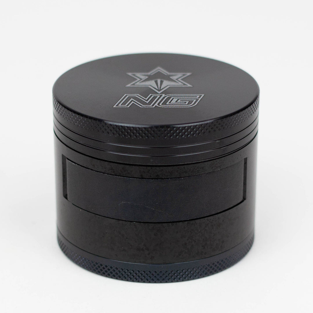 This magnetized lid grinder features a side door opening for easy access. Constructed of 3 pieces aluminum that includes a pollen catcher at the bottom with a scraper. The middle compartment consists of the teeth on top and pollen screen on the bottom. A friction ring ensures smooth grinding