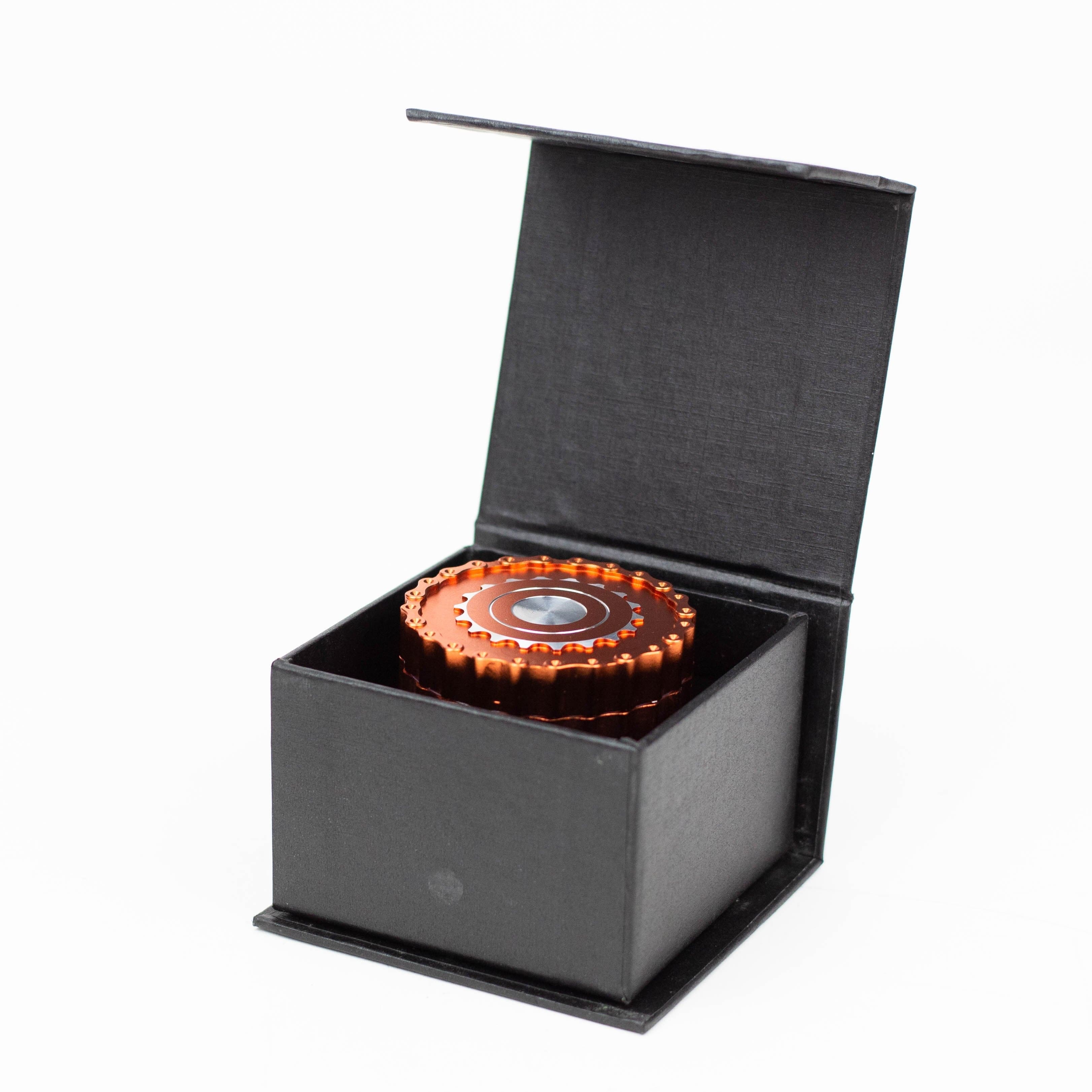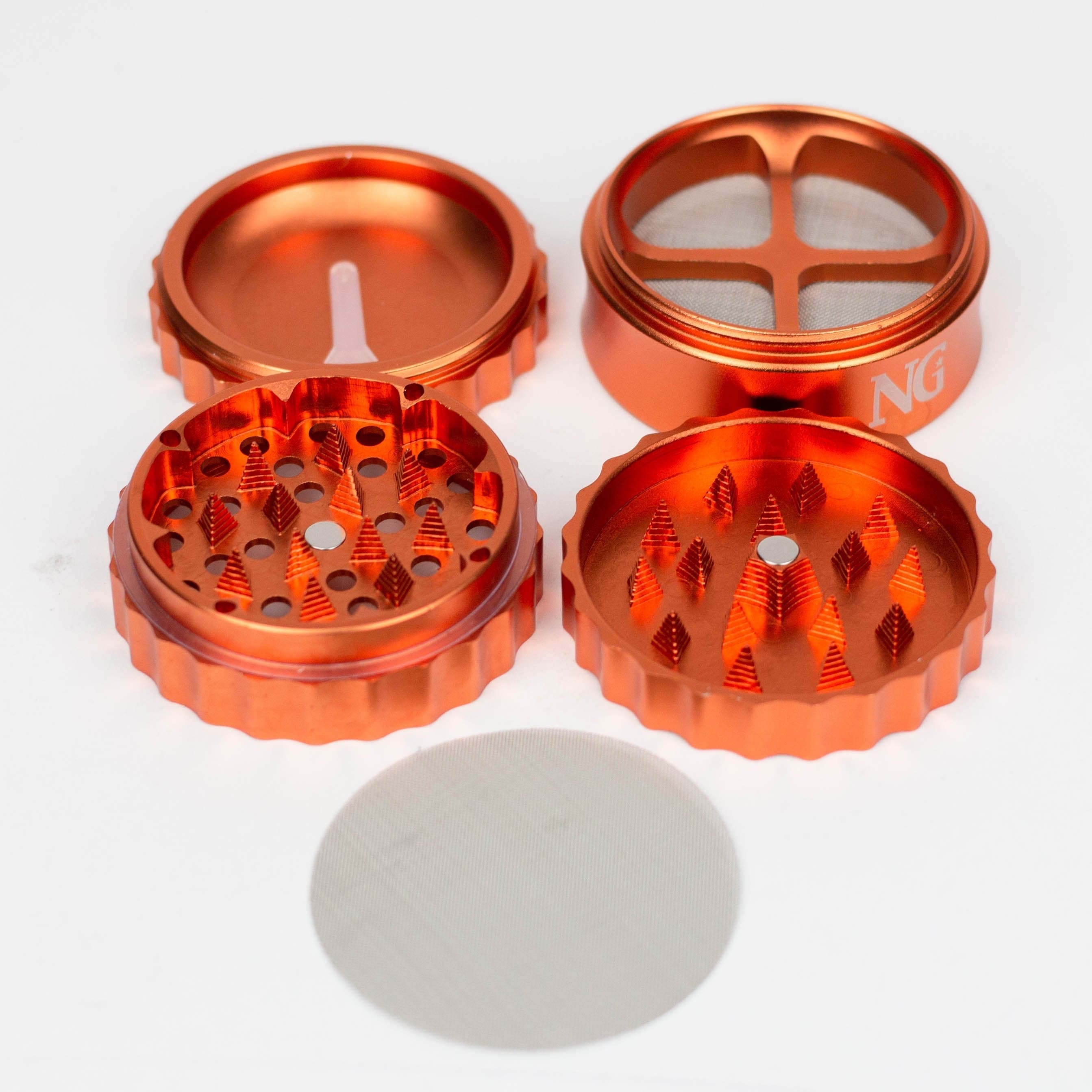 A 4-Piece CNC-made pure aluminum grinder with 27 tricorne teeth that have super sharp edges to shred your herbs into a fine consistency. It includes pollen screen and catcher sections and has a scraper included. The nylon friction ring ensures smooth grinding when the magnetic lid is cranked. It is designed with ridges that provide a good grip at both the top and bottom.