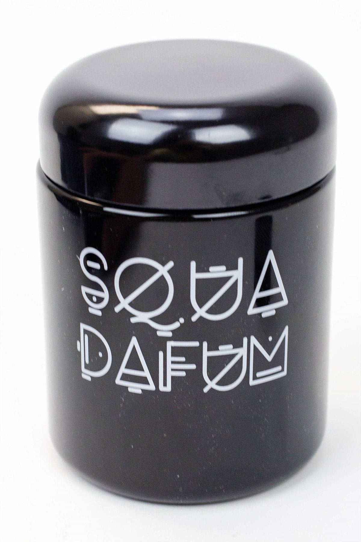 The Future Logo Squadafum Ultraviolet Pot is produced with an ultraviolet quartz that blocks all visible light, allowing only ultraviolet and infrared light to reach its interior, helping in the process of curing and preserving. With screw closure and airtight insulation, this is without a doubt the best way to conserve your crema or your flowers! The 100ml Future Logo model has an intermediate size providing variety and versatility. In this edition, his art has a Squadafum logo with futuristic typography.