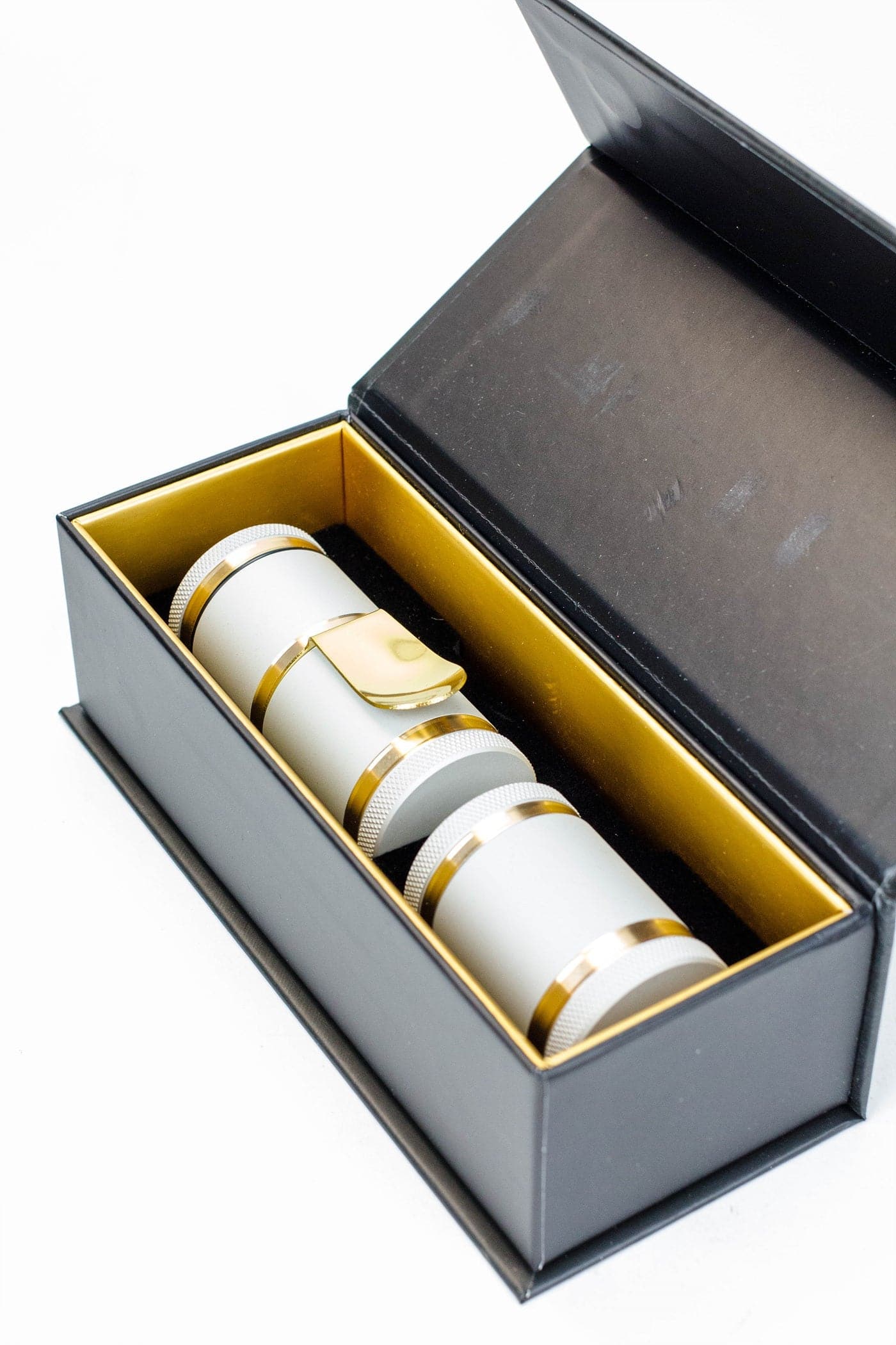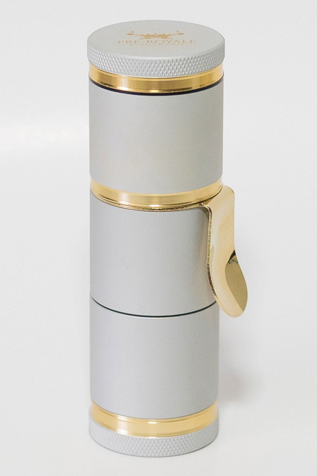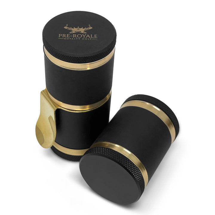 Royale G™ is an all new patent pending modular grinder designed to perfection to create the ultimate grinding experience. The gold spade accompanied with golden trim accents are designed to match your luxurious taste and lifestyle of success. Image is everything in this world. Be a contributor to ending the stigma with style.
