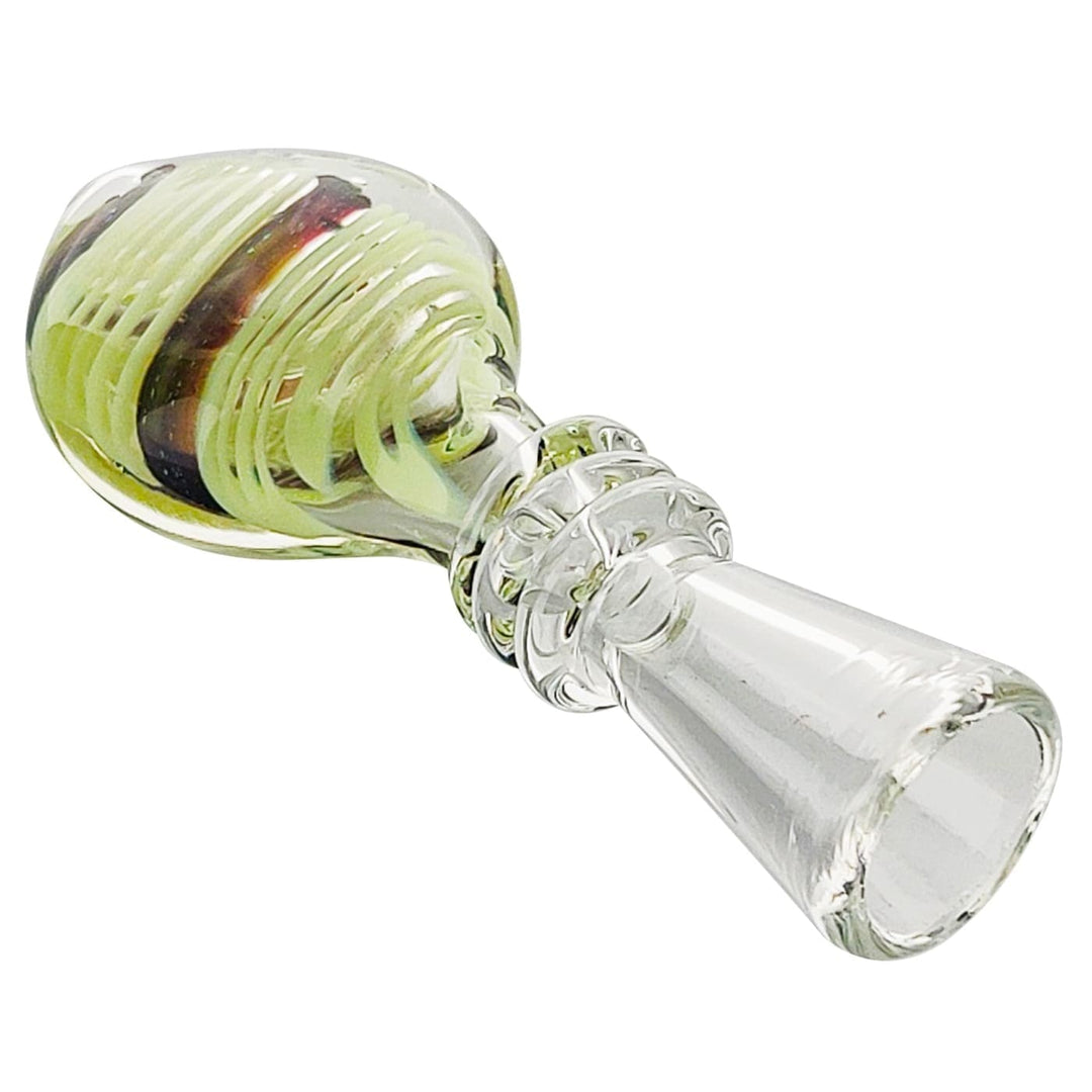 This slime swirl glass one-hitter glass pipe is a chillum with a long funnel-shaped bowl. Reinforced glass ribs and a comfortable medallion-shaped handle that rests nicely in your palm.
