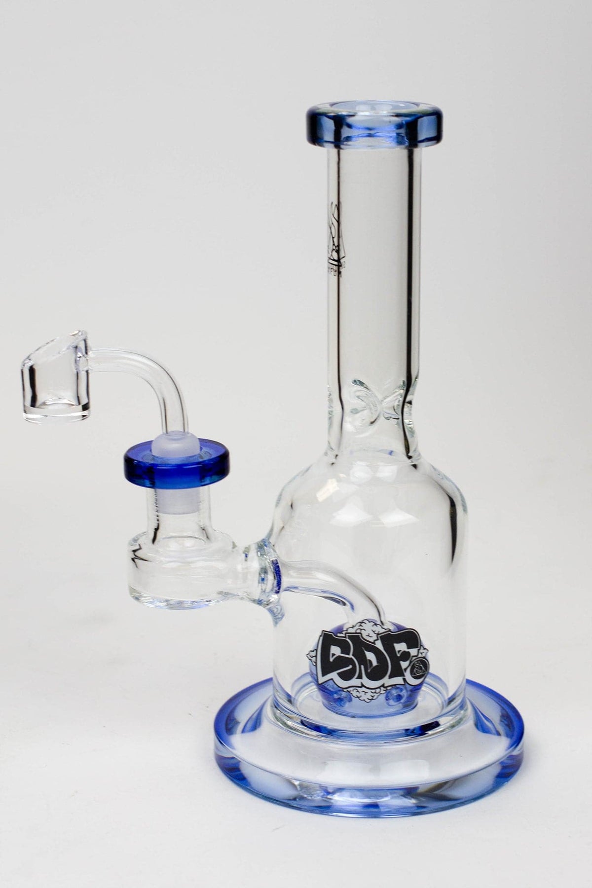 Measures 19cm in height, is made of borosilicate glass with a thickness of 5mm, comes with a Quartz nail and dabber, has a differentiated percolator attached to the downsteam and is one of the few models for dabbing with ice lock.